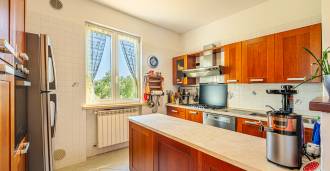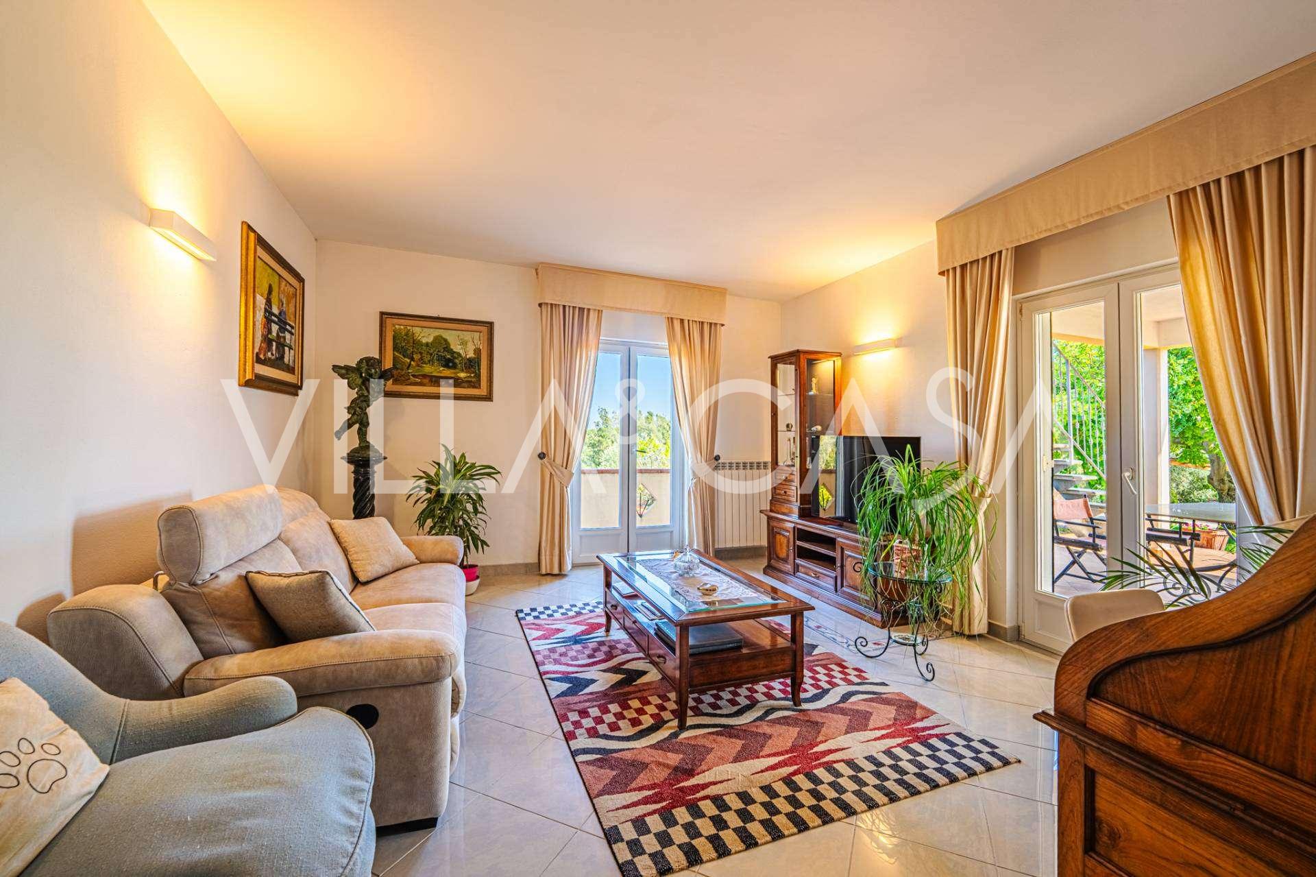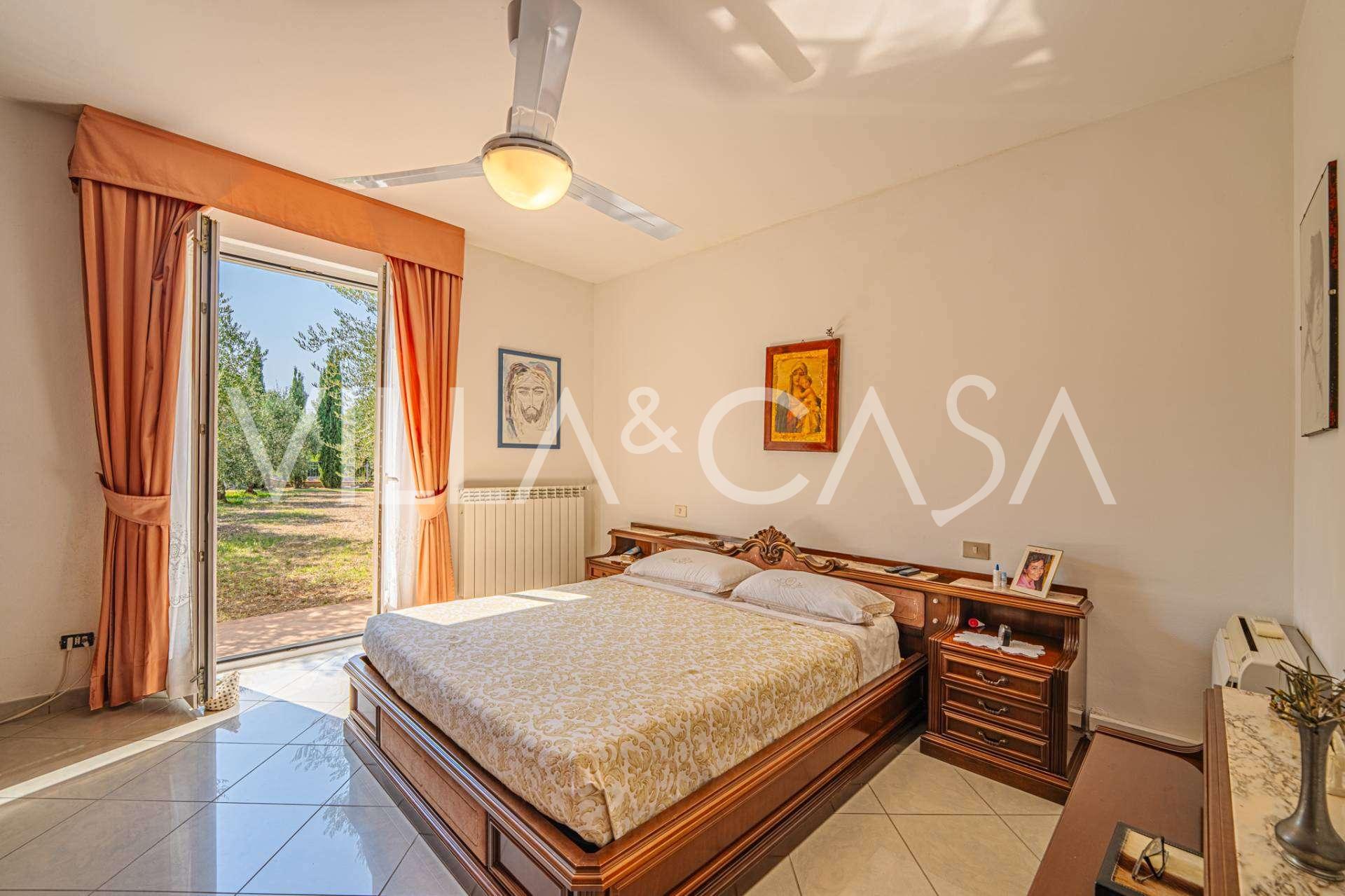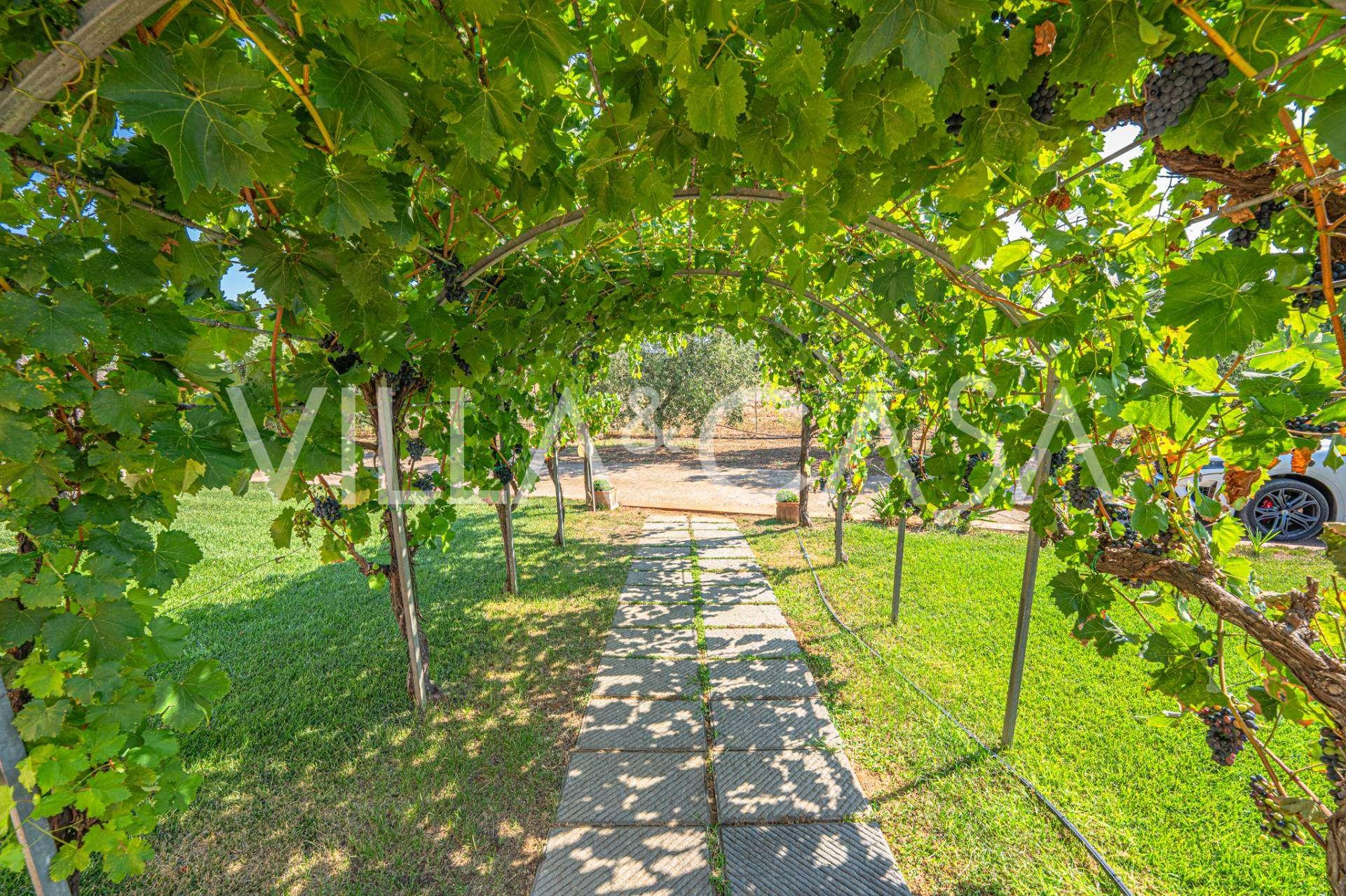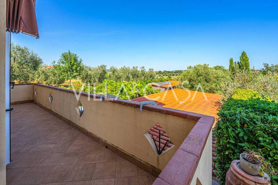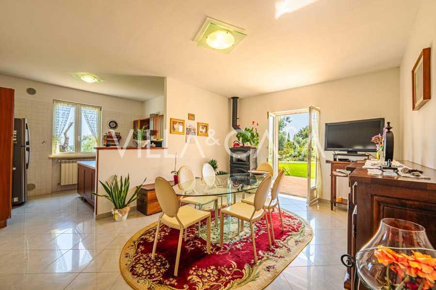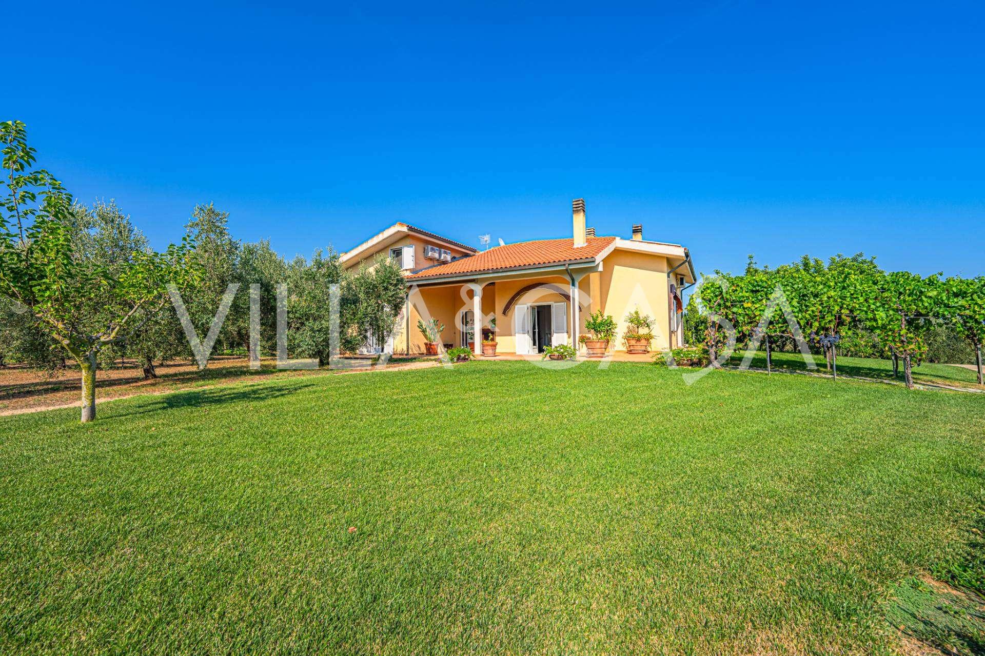 La villa è in ottime condizioni, circondata da un terreno privato di 13.000 m². Sul terreno si trova un giardino curato con ulivi, vigneto, alberi da frutto e un orto, che creano un'atmosfera di comfort e armonia con la natura.