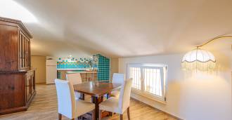 Mansarda (ingresso separato tramite scala esterna): ampio soggiorno, cucina, tre camere da letto, due bagni e due locali aggiuntivi.