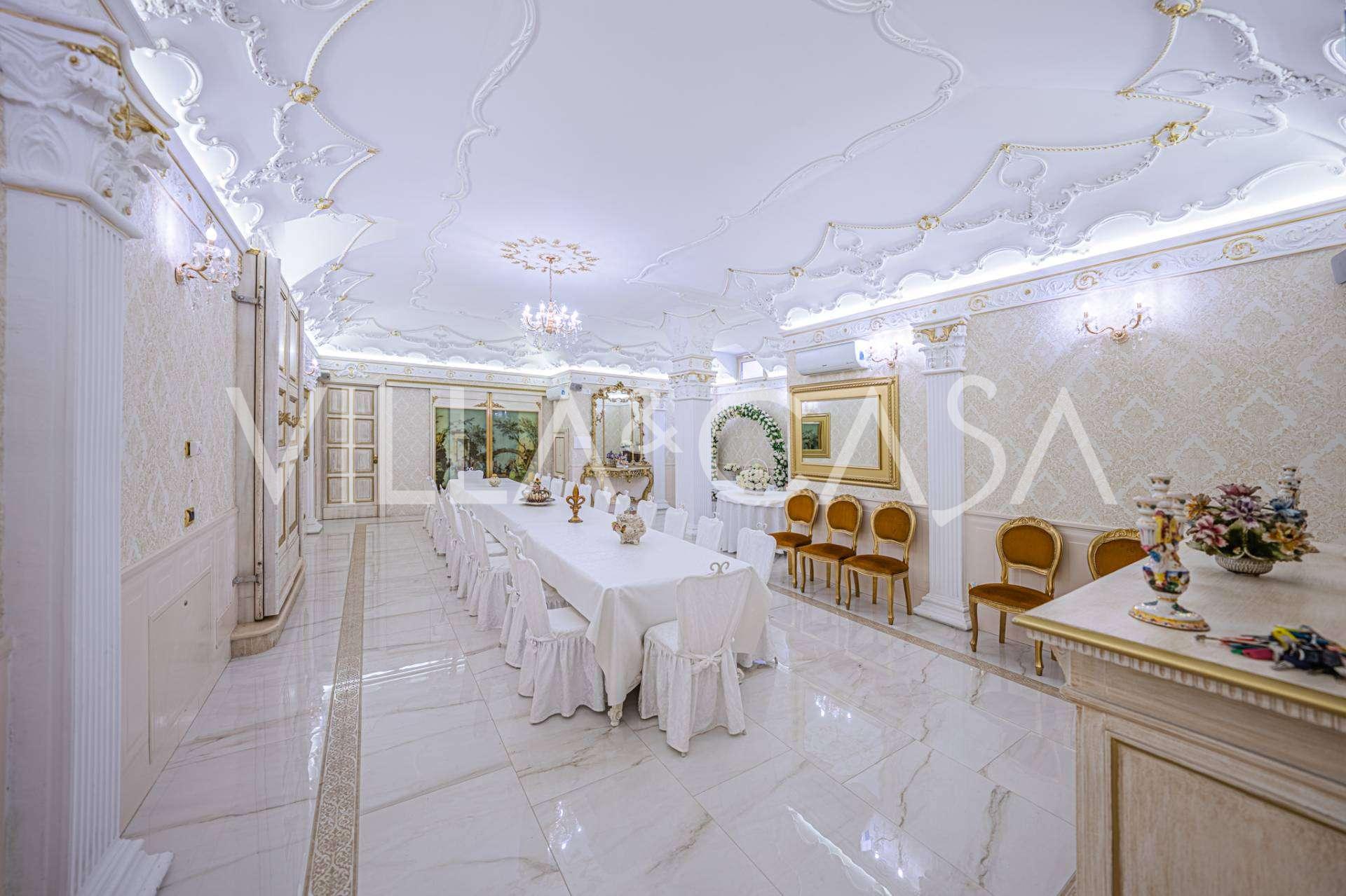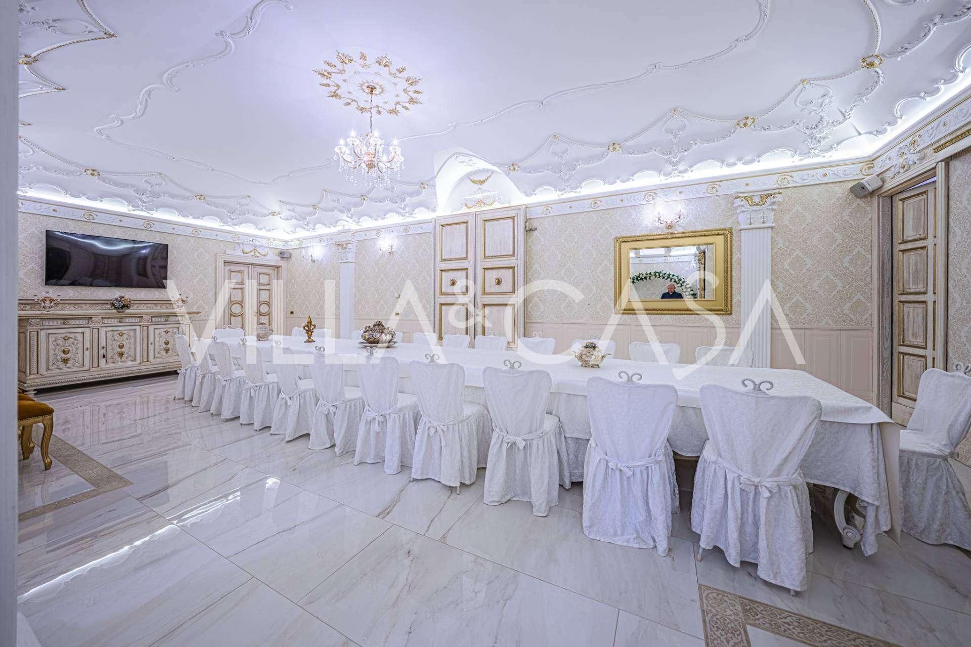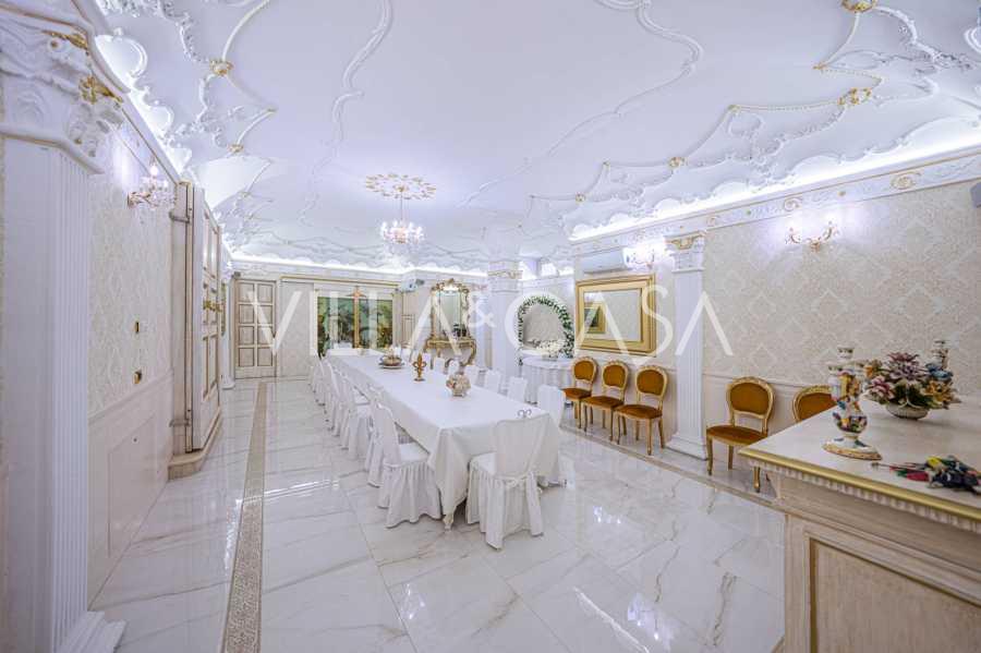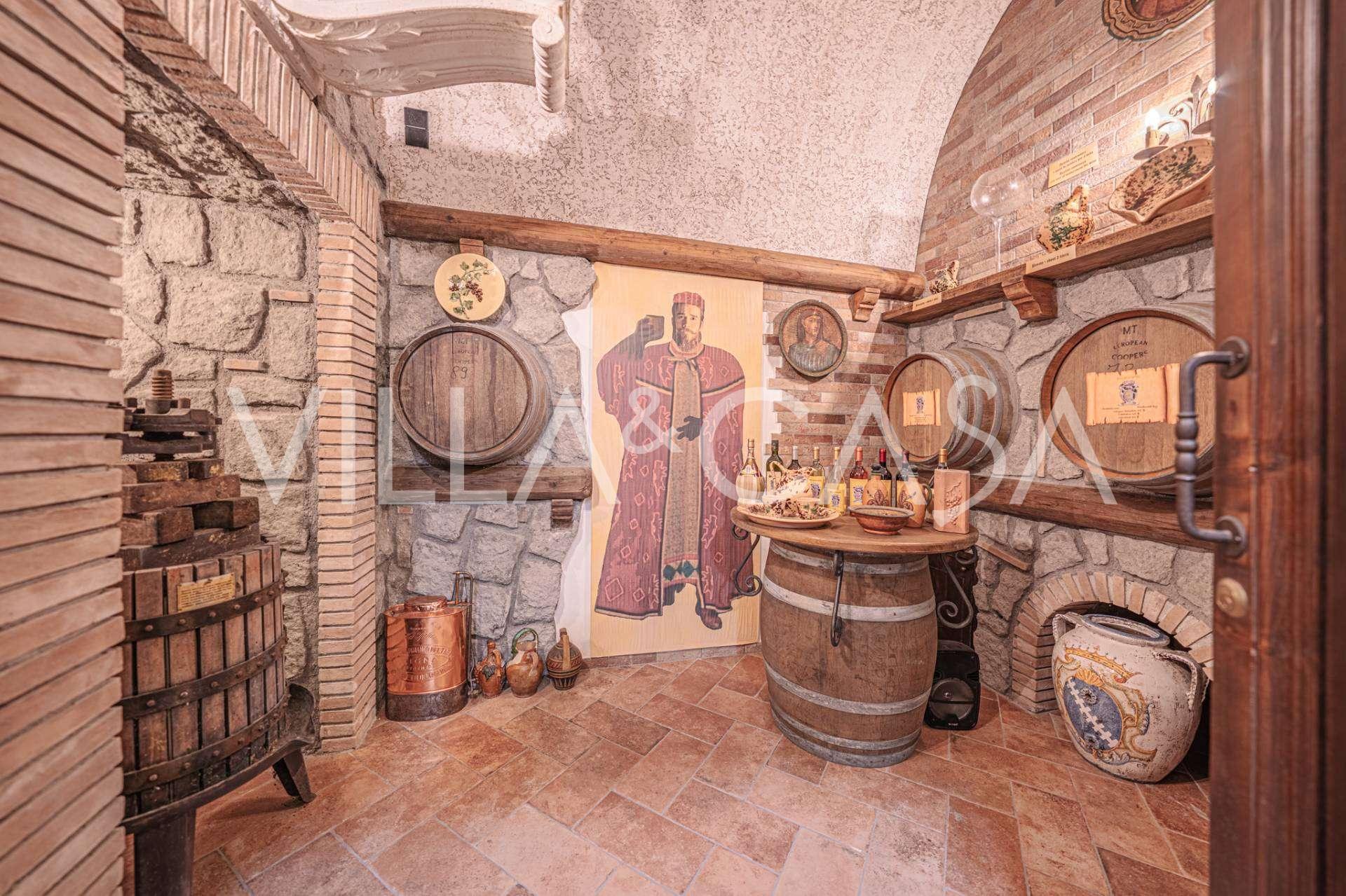 L'architettura della villa combina materiali tradizionali italiani, come terracotta, legno e pietra peperino, con tecnologie moderne per un soggiorno confortevole. La residenza ha una superficie di 450 m2 e comprende dieci eleganti camere da letto, nove bagni, diverse cucine e sale da pranzo, una sala per ricevimenti in stile barocco, una cantina e ampie terrazze con viste incantevoli. Ogni ambiente è dotato di sistemi di riscaldamento e condizionamento individuali, Wi-Fi e TV satellitare, e l'intera area è sorvegliata da un moderno sistema di videosorveglianza.