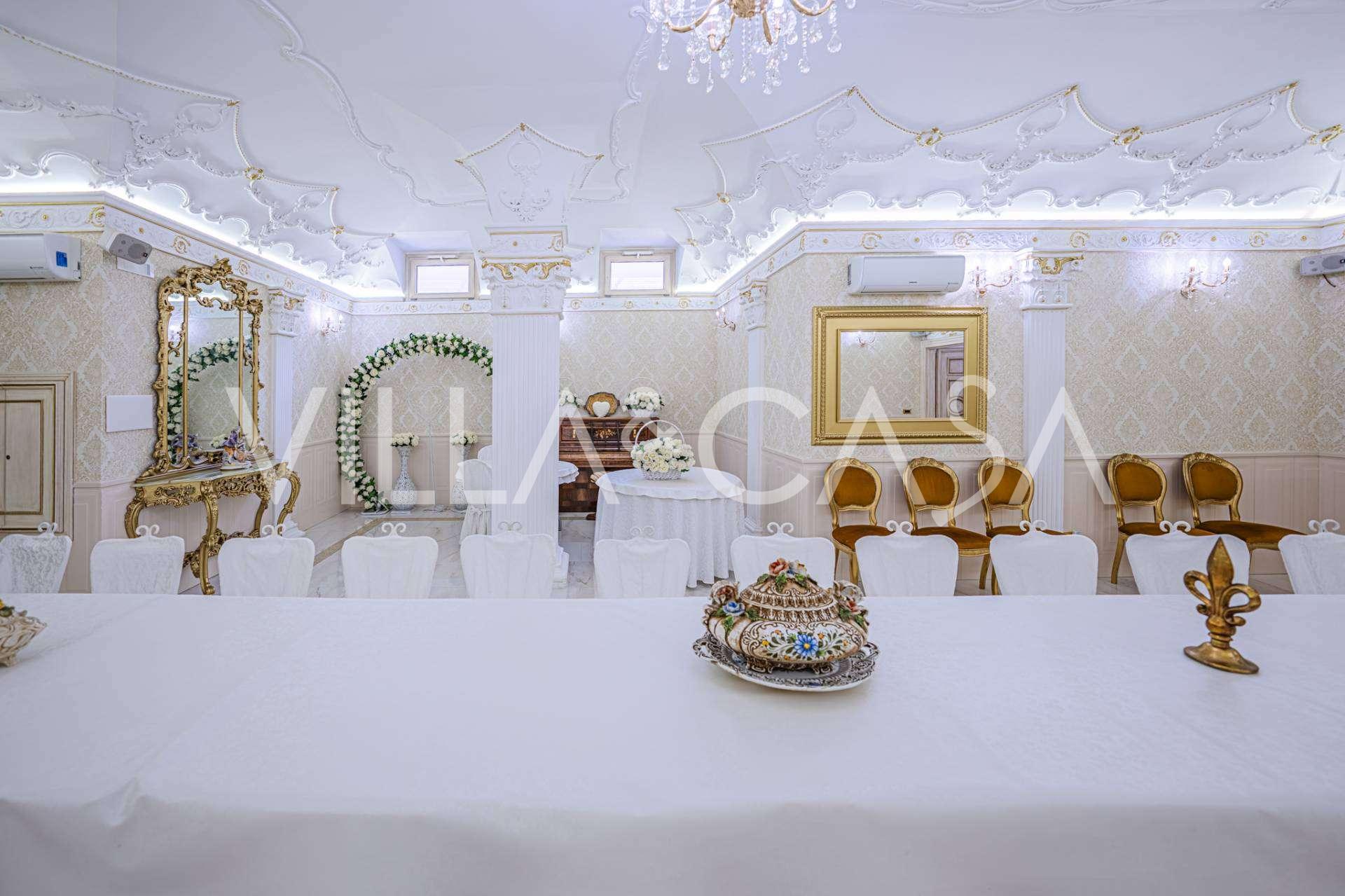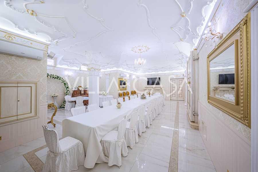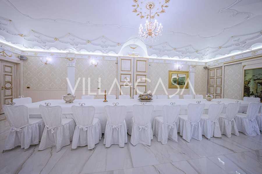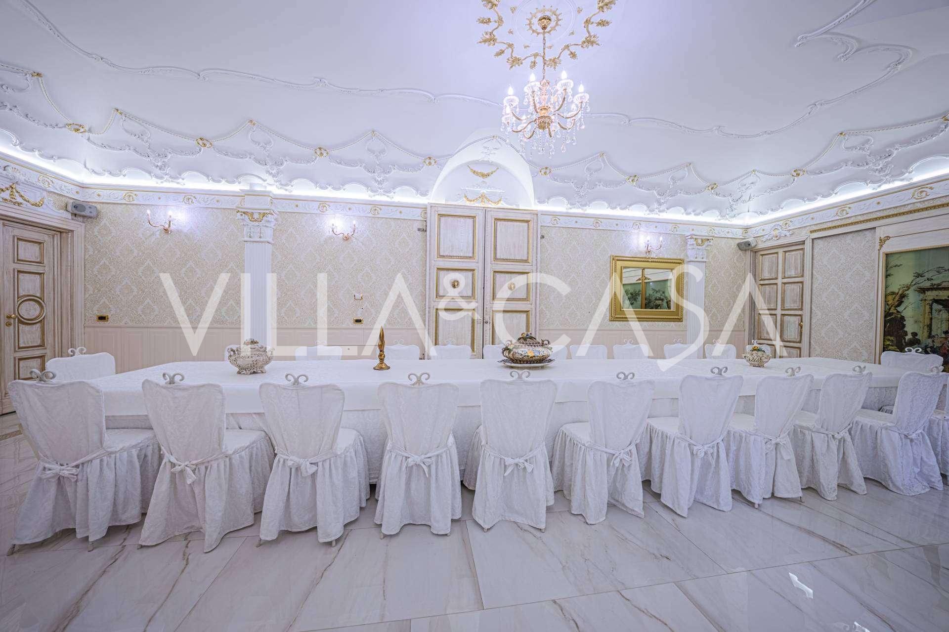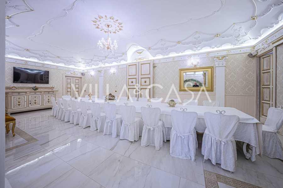 L'architettura della villa combina materiali tradizionali italiani, come terracotta, legno e pietra peperino, con tecnologie moderne per un soggiorno confortevole. La residenza ha una superficie di 450 m2 e comprende dieci eleganti camere da letto, nove bagni, diverse cucine e sale da pranzo, una sala per ricevimenti in stile barocco, una cantina e ampie terrazze con viste incantevoli. Ogni ambiente è dotato di sistemi di riscaldamento e condizionamento individuali, Wi-Fi e TV satellitare, e l'intera area è sorvegliata da un moderno sistema di videosorveglianza.