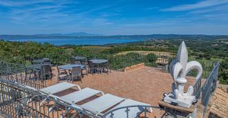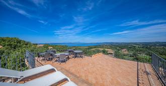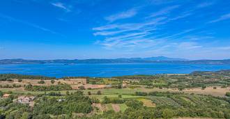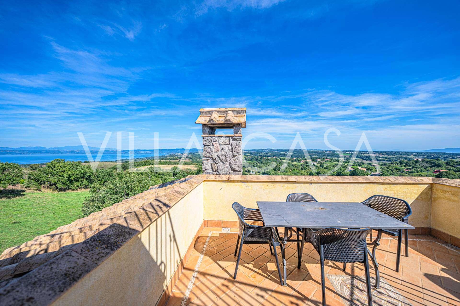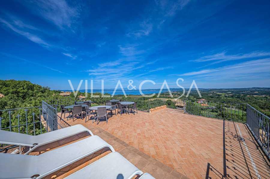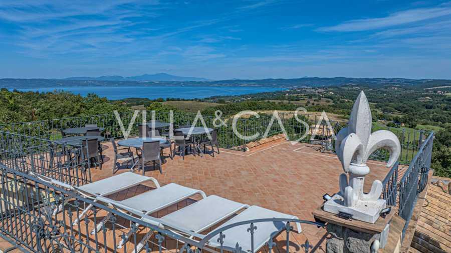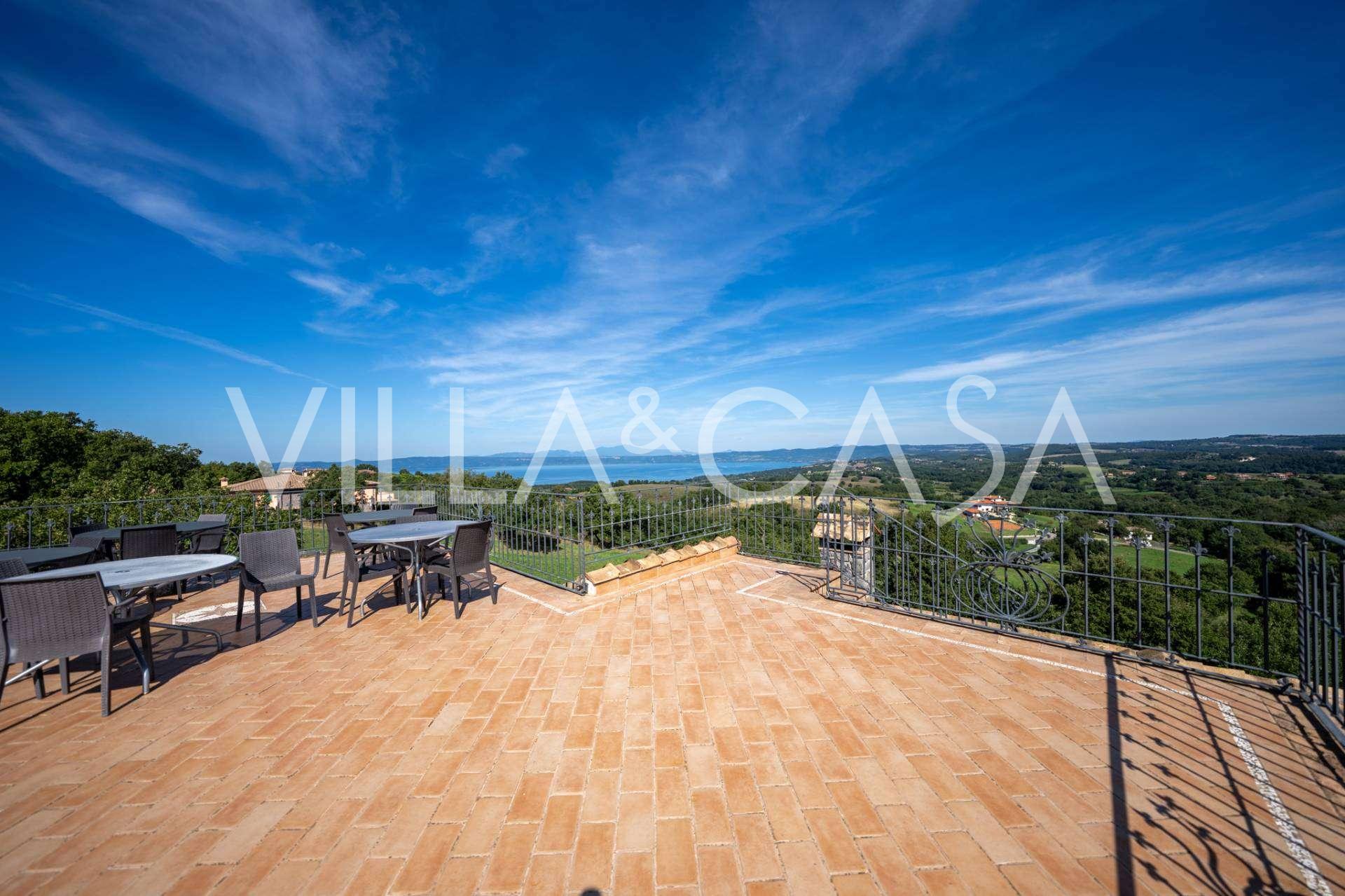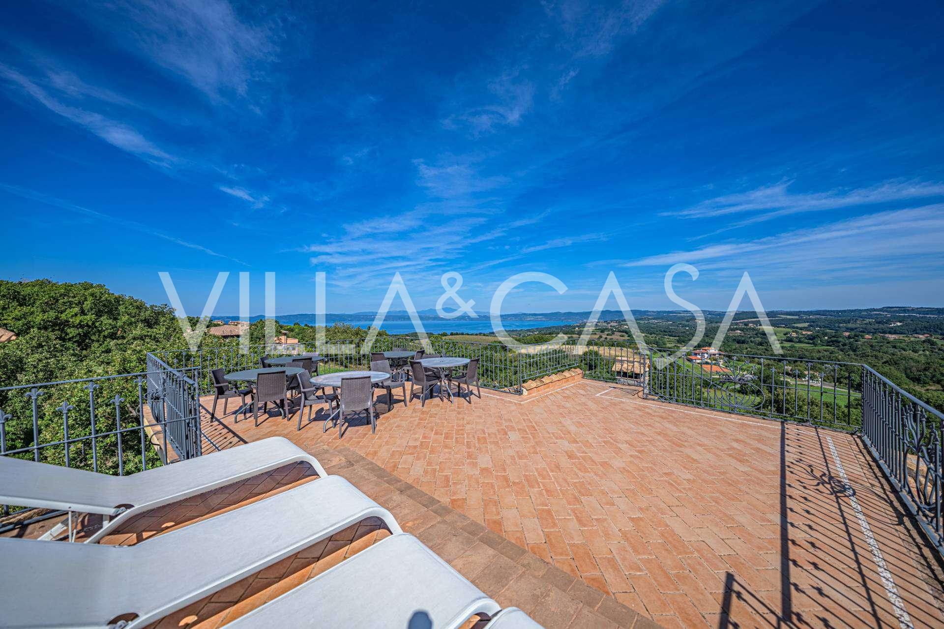 In vendita una lussuosa villa situata sulla cima di una collina con vista sul Lago di Bolsena e le dolci colline del Lazio. Ogni alba e tramonto qui si trasformano in un vero spettacolo artistico, e il clima mite combinato con la leggera brezza serale dona una sensazione di freschezza e tranquillità durante tutto l'anno.