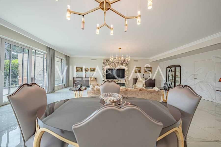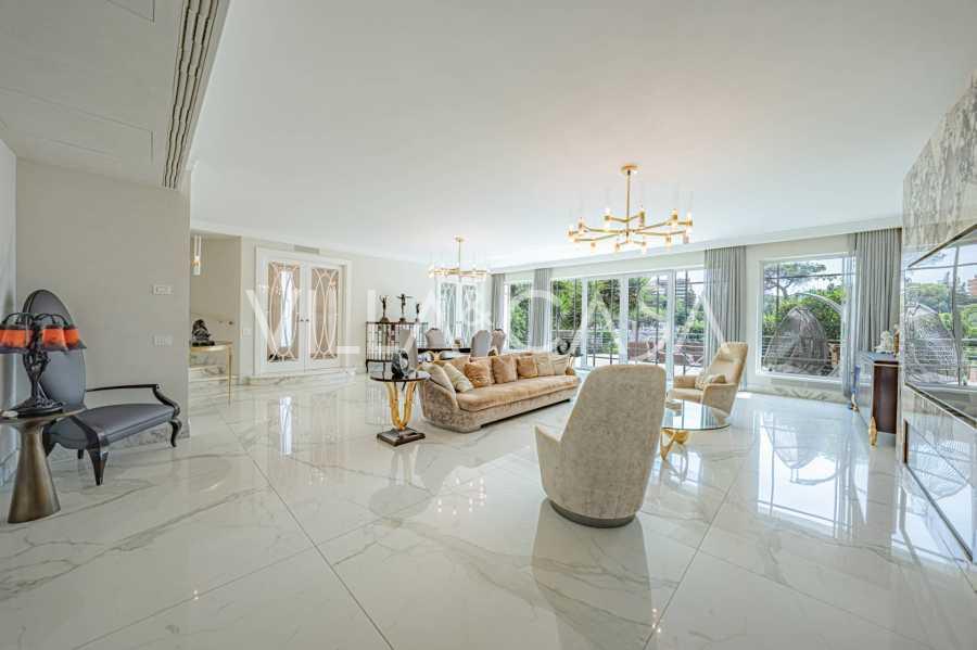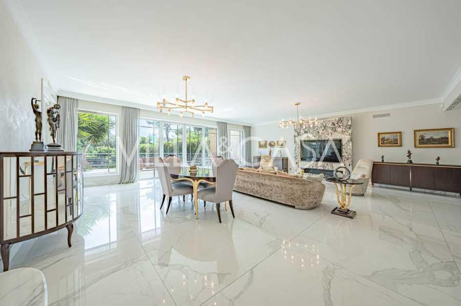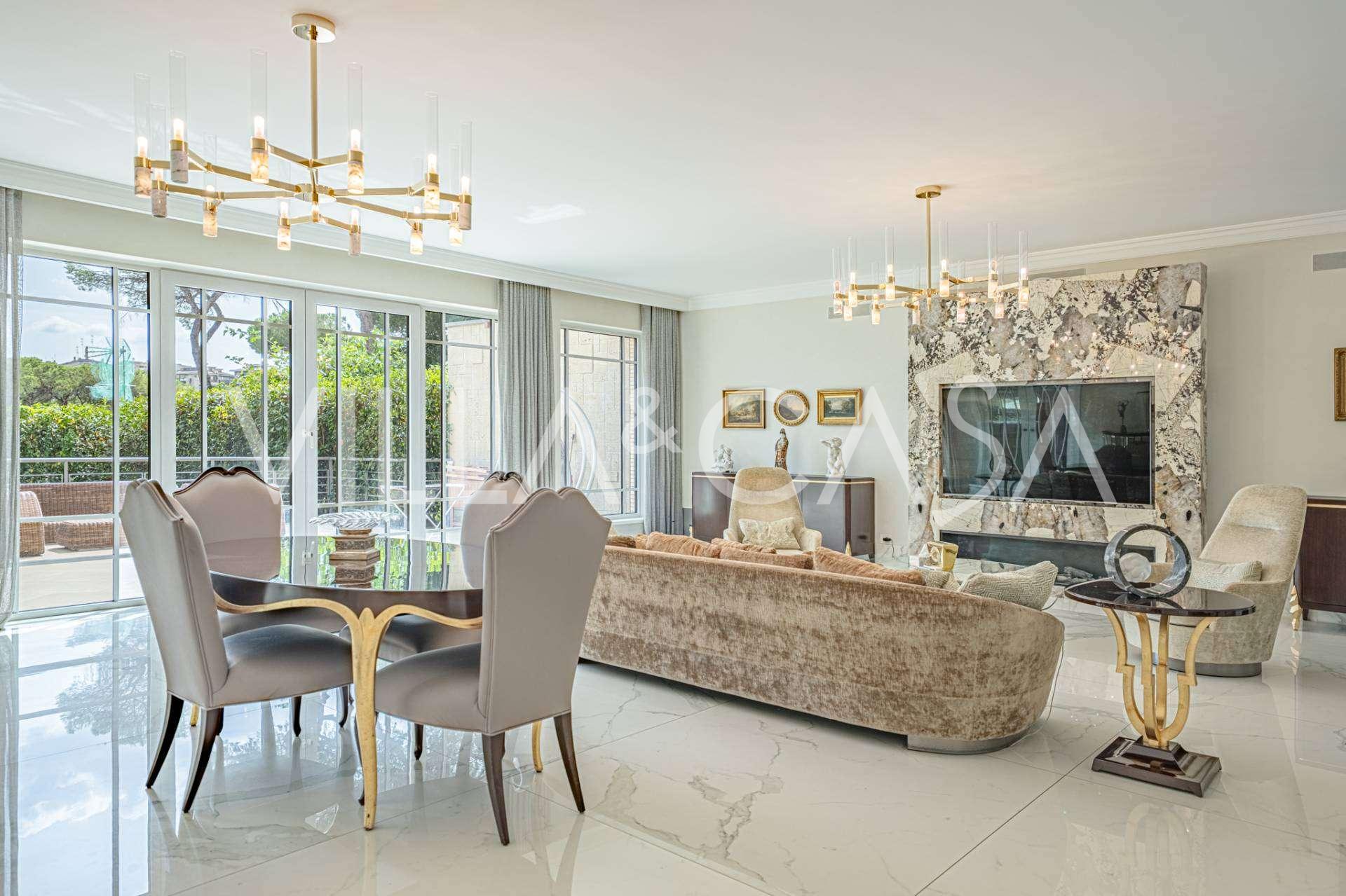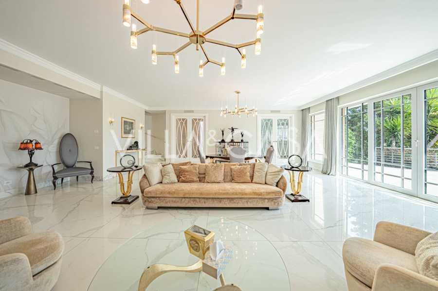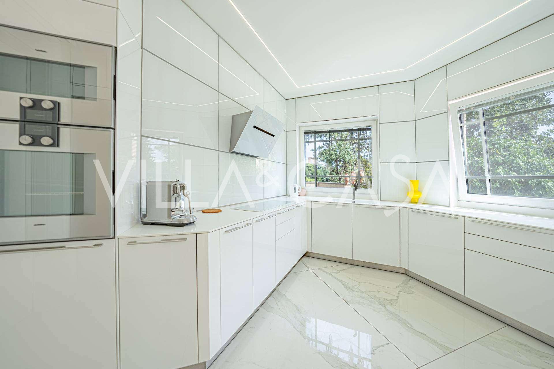 In una delle strade più prestigiose del quartiere EUR si trova una raffinata residenza, completamente rinnovata nel 2020. Questa villa combina un'estetica sofisticata, un design moderno e un alto livello di comfort, creando uno spazio adatto ai più esigenti intenditori.