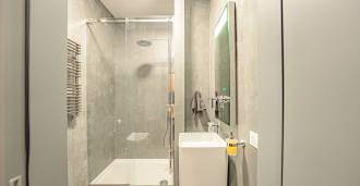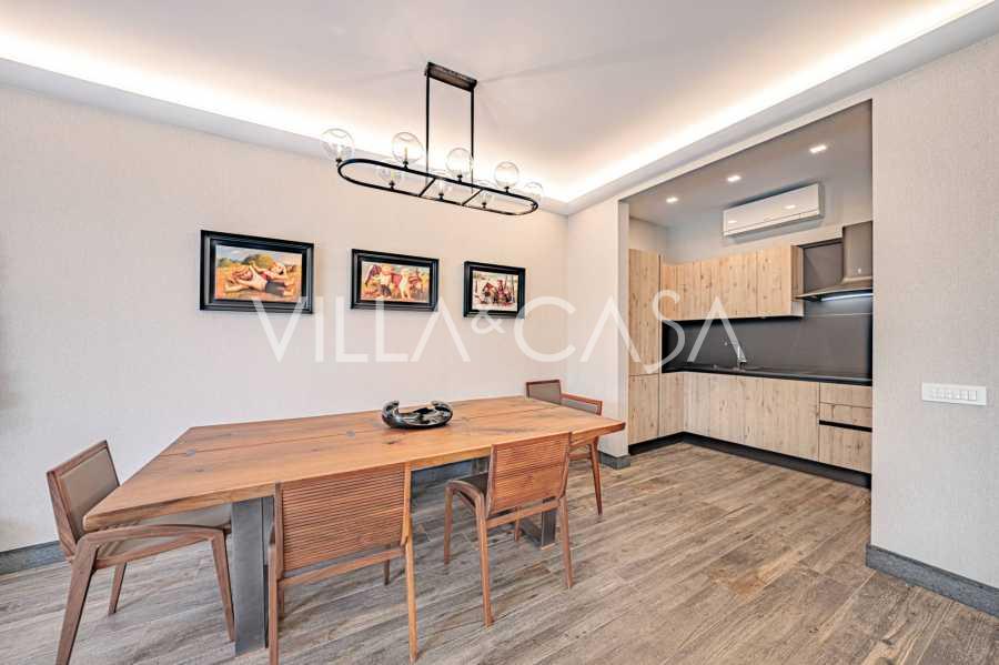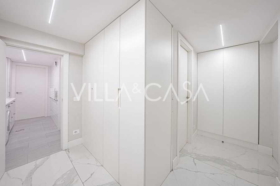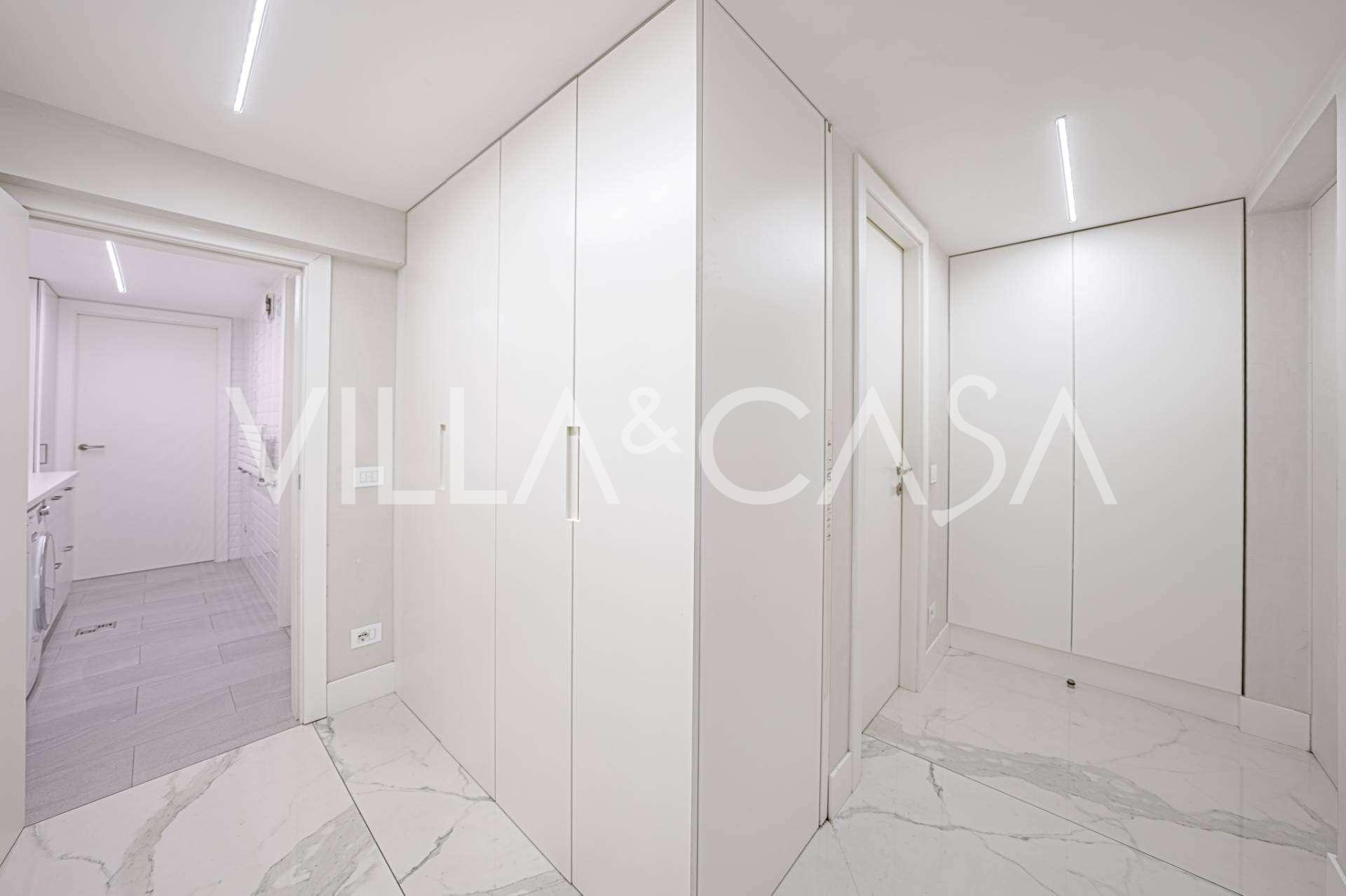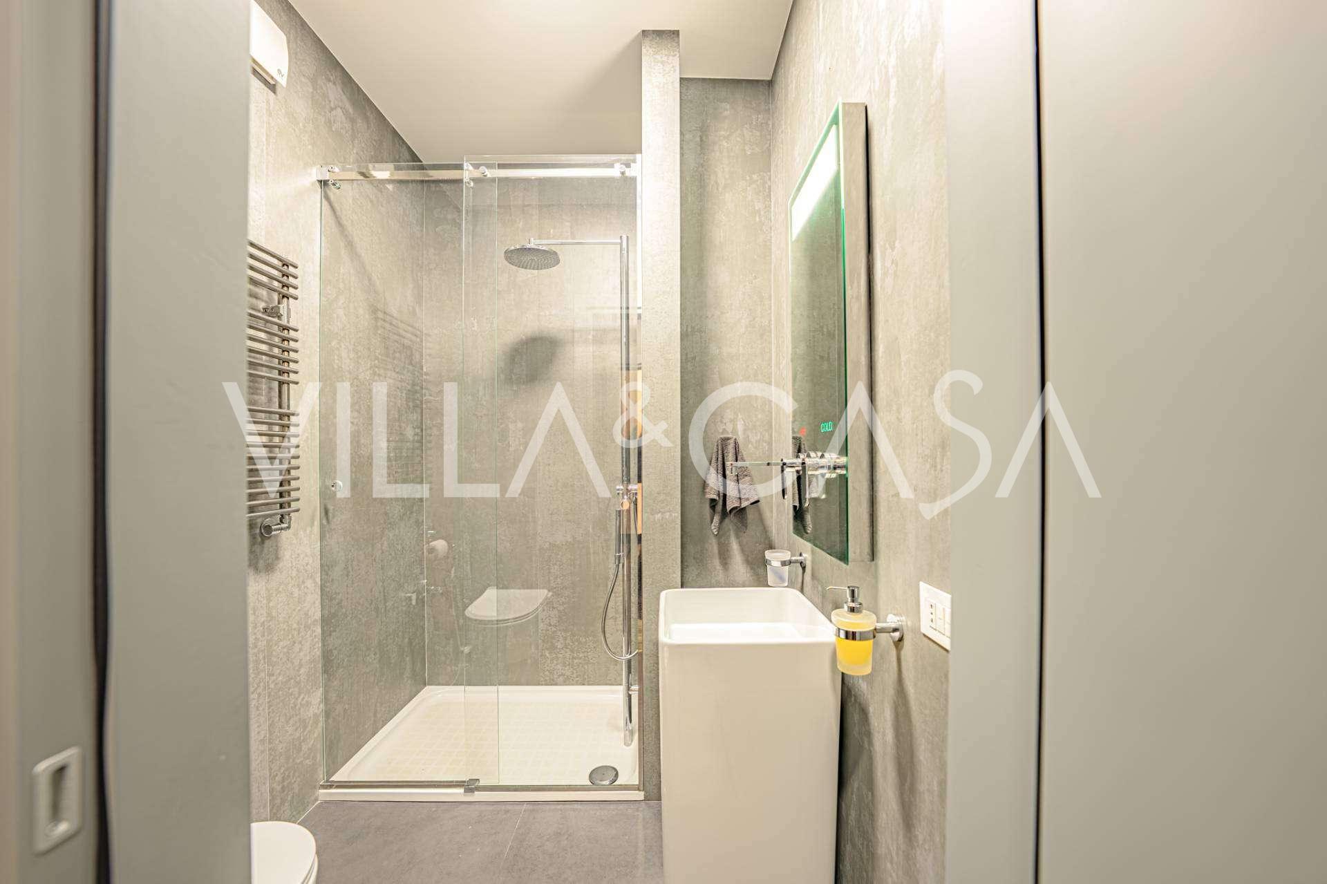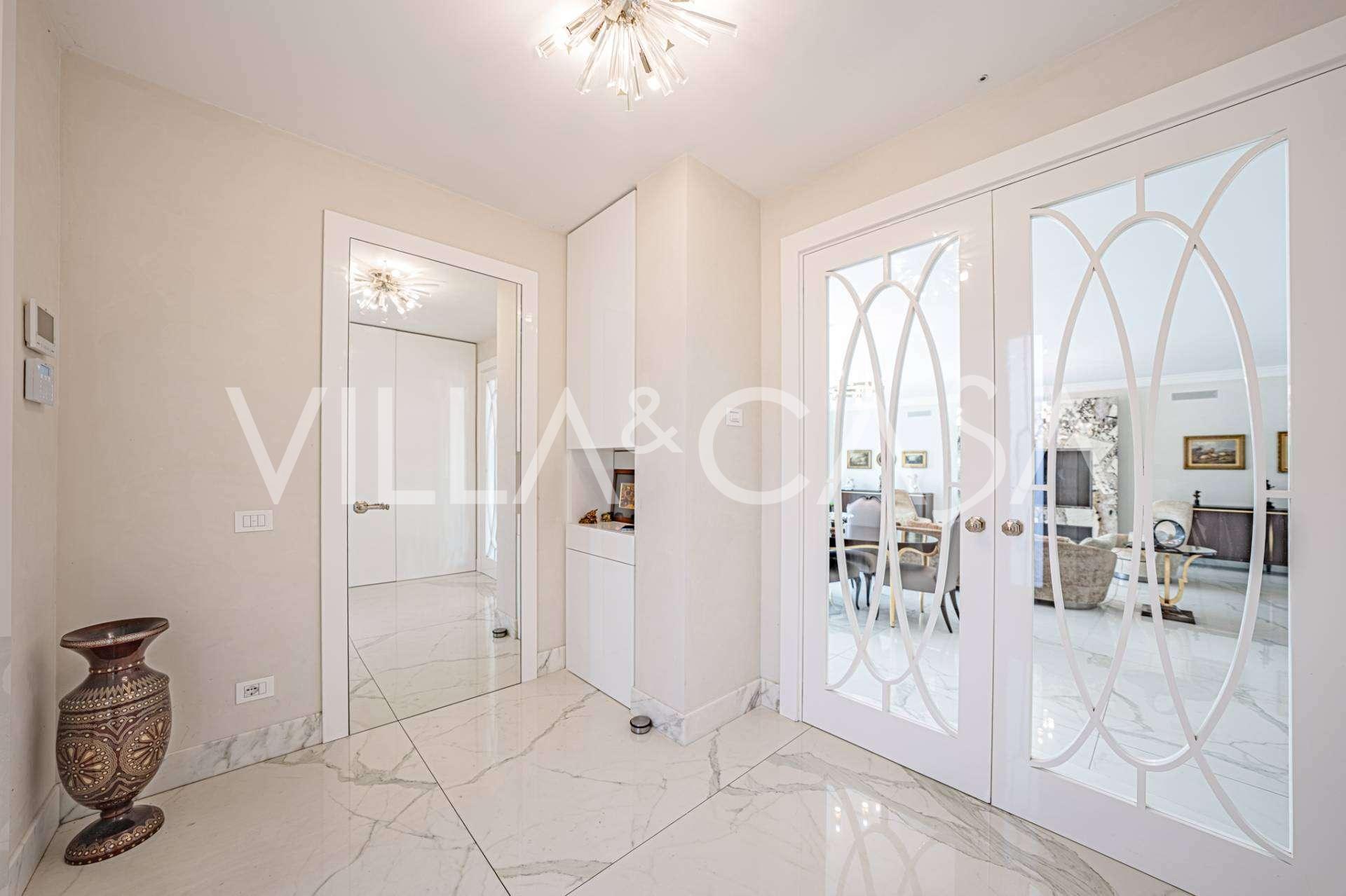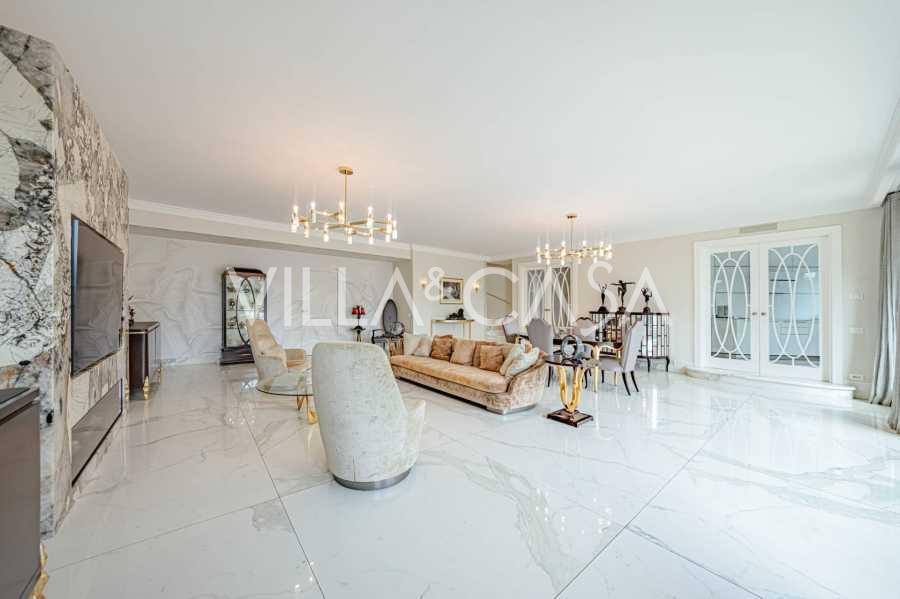 Gli interni di altissimo livello includono solo i migliori materiali: gres porcellanato di classe premium nei soggiorni e nei bagni, parquet a doghe larghe nella zona relax, scala in marmo, finestre Schüco con vetro antieffrazione. Gli arredi integrati, realizzati su misura, sono un capolavoro dell'arte della falegnameria italiana. I moderni sistemi ingegneristici assicurano un'alta efficienza energetica di classe A.