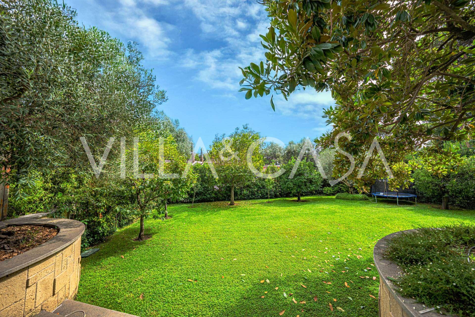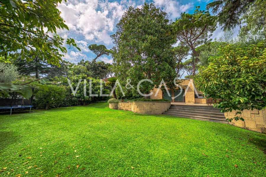 Il giardino paesaggistico, creato con particolare attenzione ai dettagli, è adornato con specie rare di alberi, tra cui una magnolia maestosa e un ulivo secolare. Il cortile d'onore può ospitare diverse auto, oltre a un garage chiuso per una macchina. La posizione ideale della residenza combina una rara tranquillità e una posizione strategica: a pochi passi si trovano i principali servizi e un comodo accesso al parco con il lago EUR, nonché ai viali Laurentina e Cristoforo Colombo. In pochi minuti si può raggiungere il centro di Roma.
