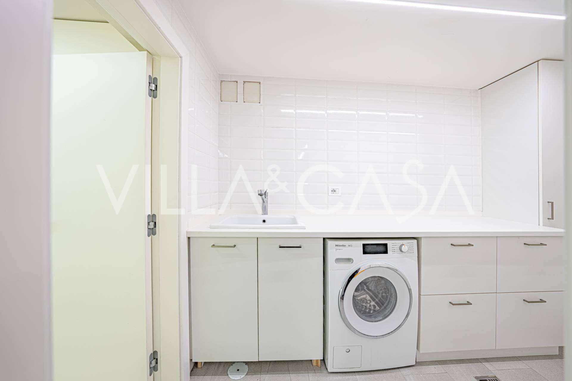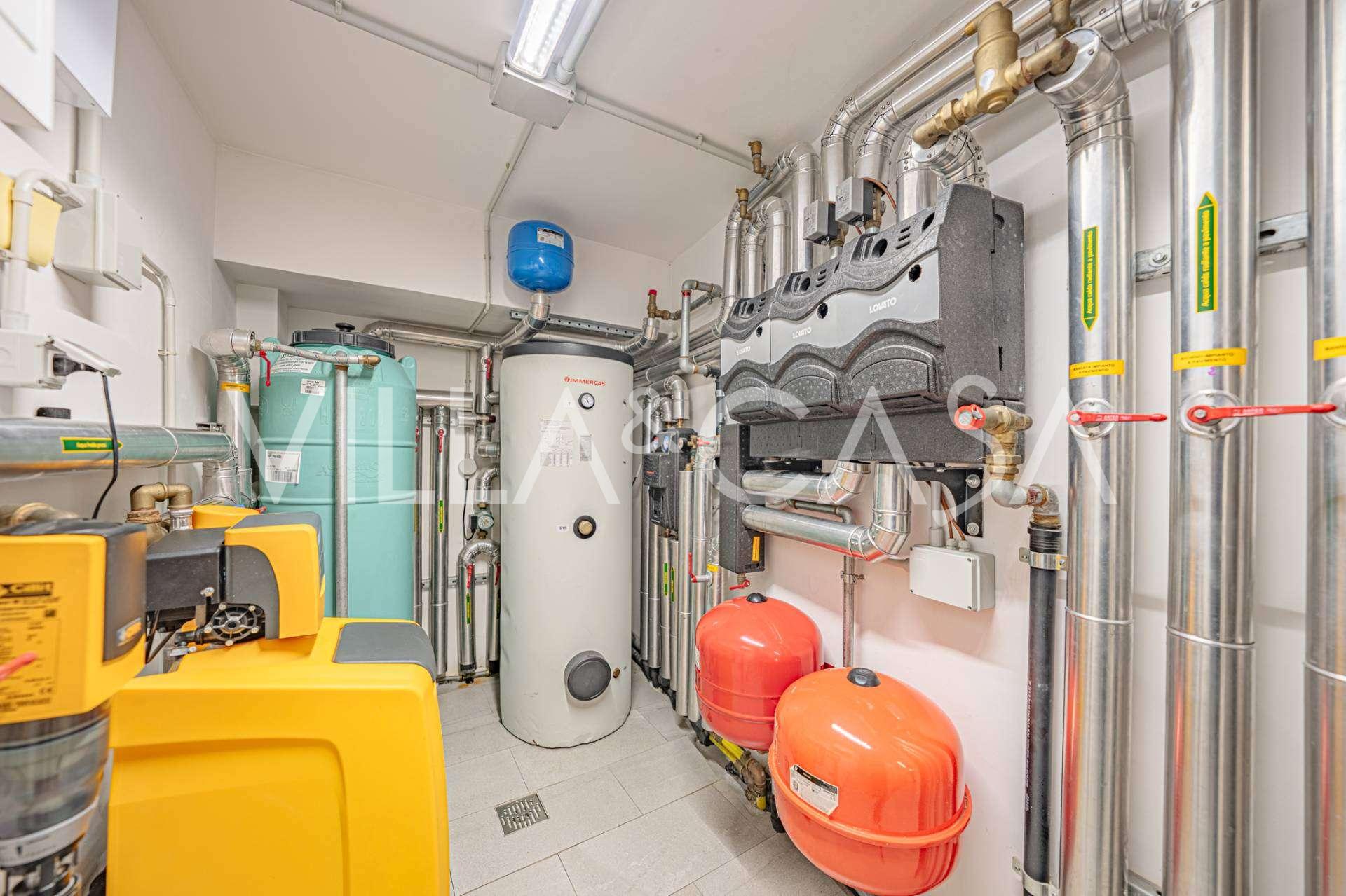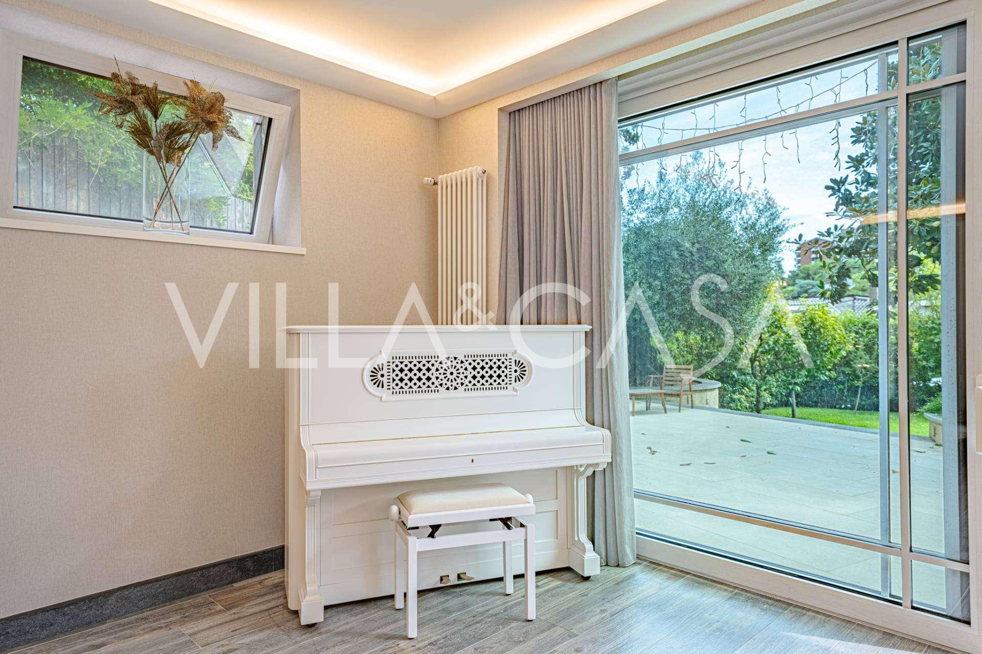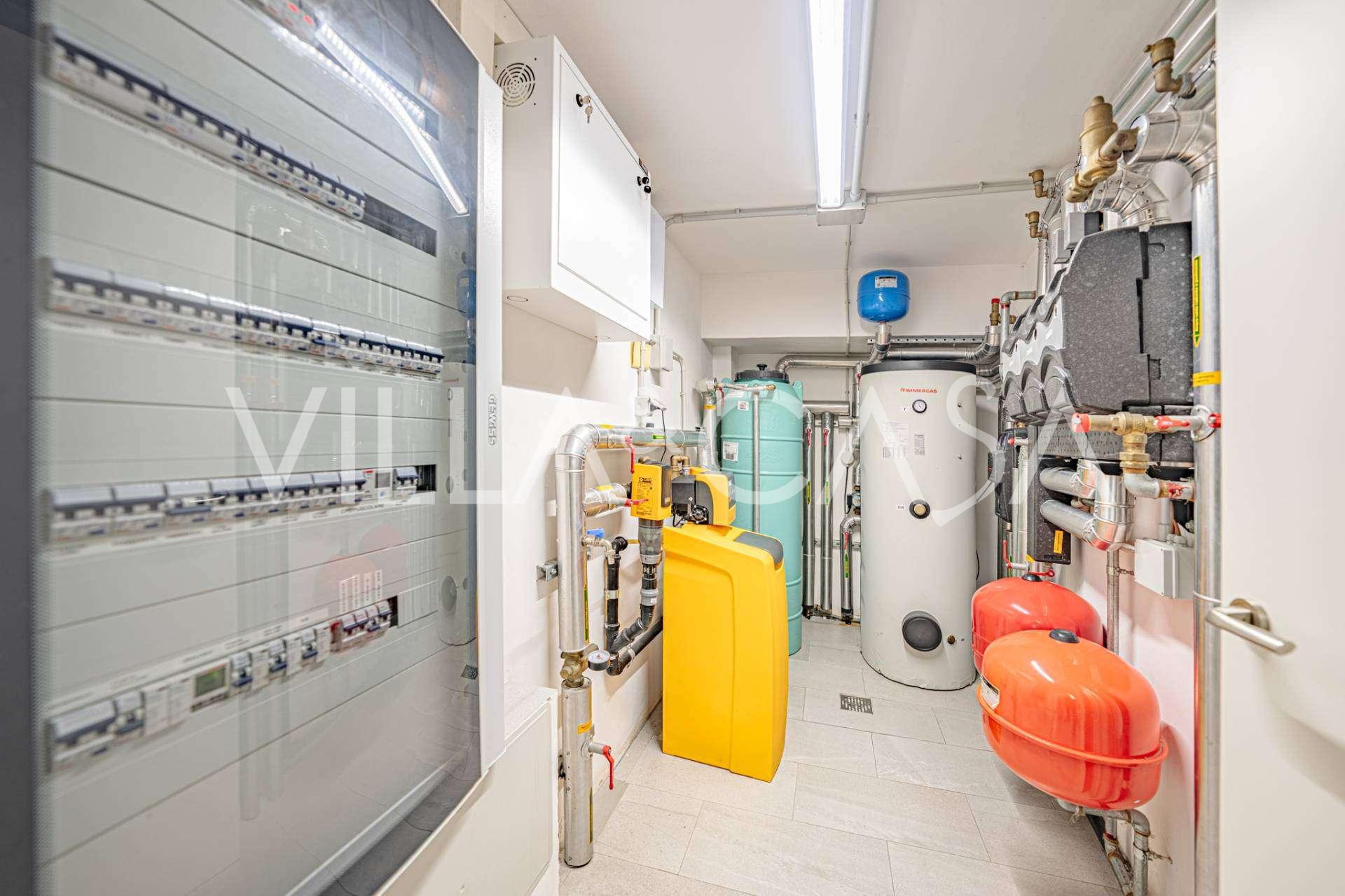 Piano seminterrato: studio-dependance esclusivo con camino, cucina a pianta aperta e bagno, con accesso alla terrazza attrezzata con cucina estiva e zona barbecue. Blocco tecnico separato con ingresso indipendente.