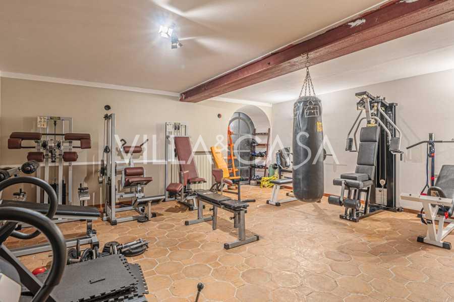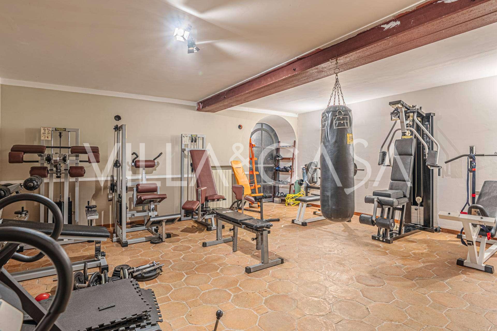 Il piano seminterrato è il secondo cuore della casa, offrendo uno spazio perfettamente organizzato per il relax e il comfort quotidiano. Qui si trovano un accogliente soggiorno con camino e zona pranzo, due cucine completamente attrezzate, una lavanderia, una palestra e locali di servizio, attentamente progettati nei minimi dettagli.