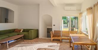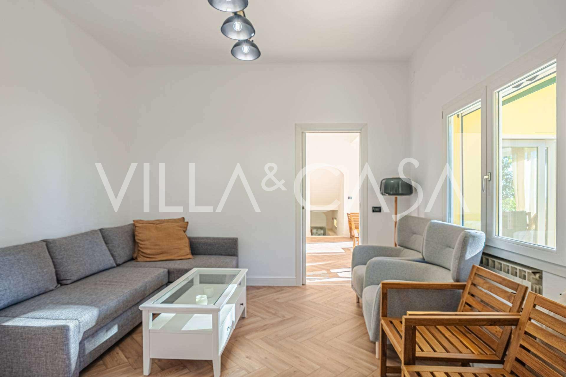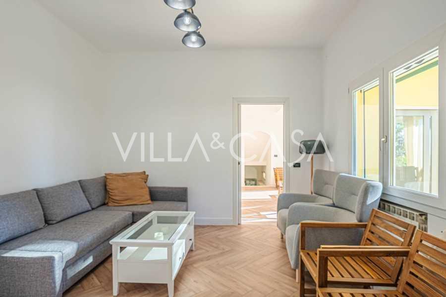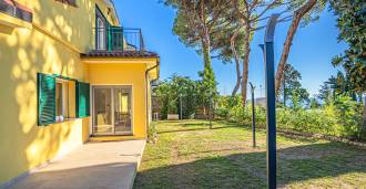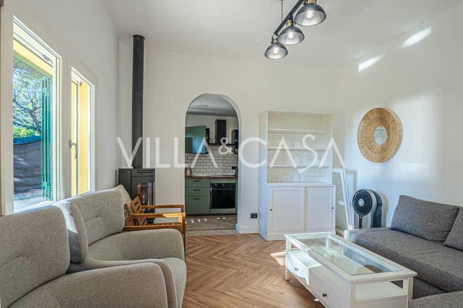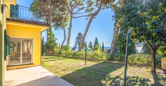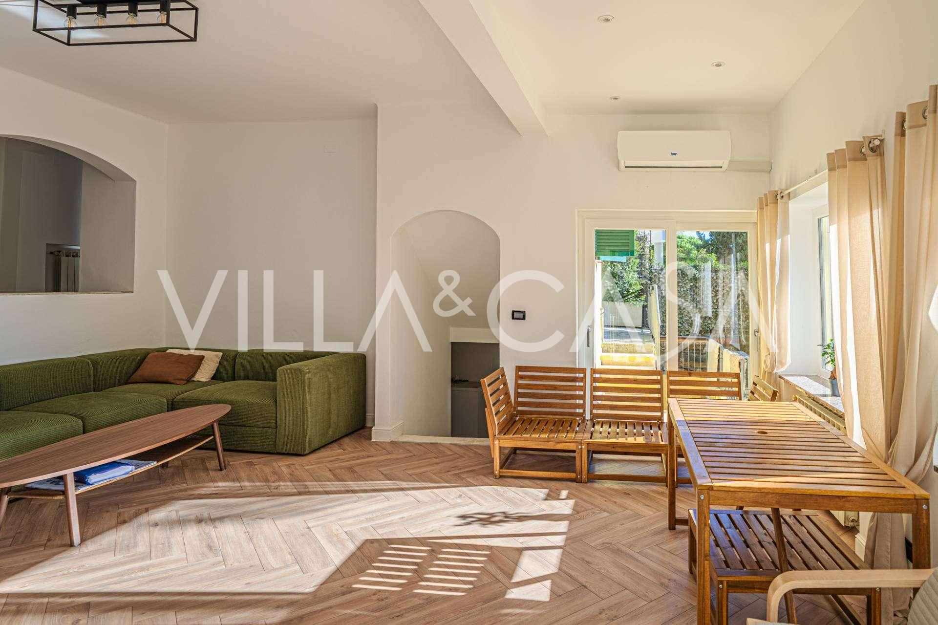 La proprietà della villa è immersa nel verde: un giardino curato con piante decorative e fiori, una zona relax all'aperto e un parcheggio privato per tre auto. Una recente ristrutturazione ha aggiunto modernità e freschezza alla casa, mantenendo al contempo l'eleganza mediterranea.