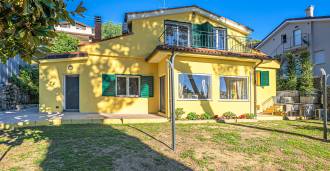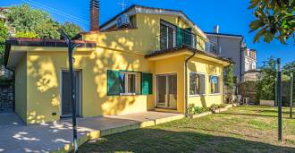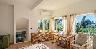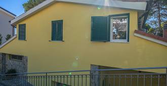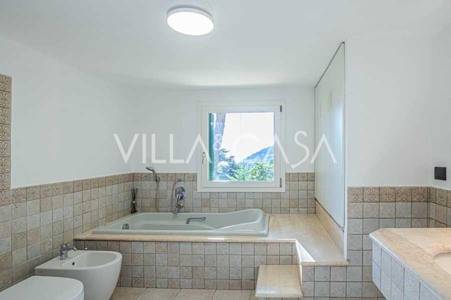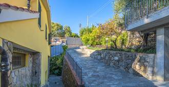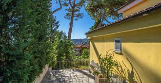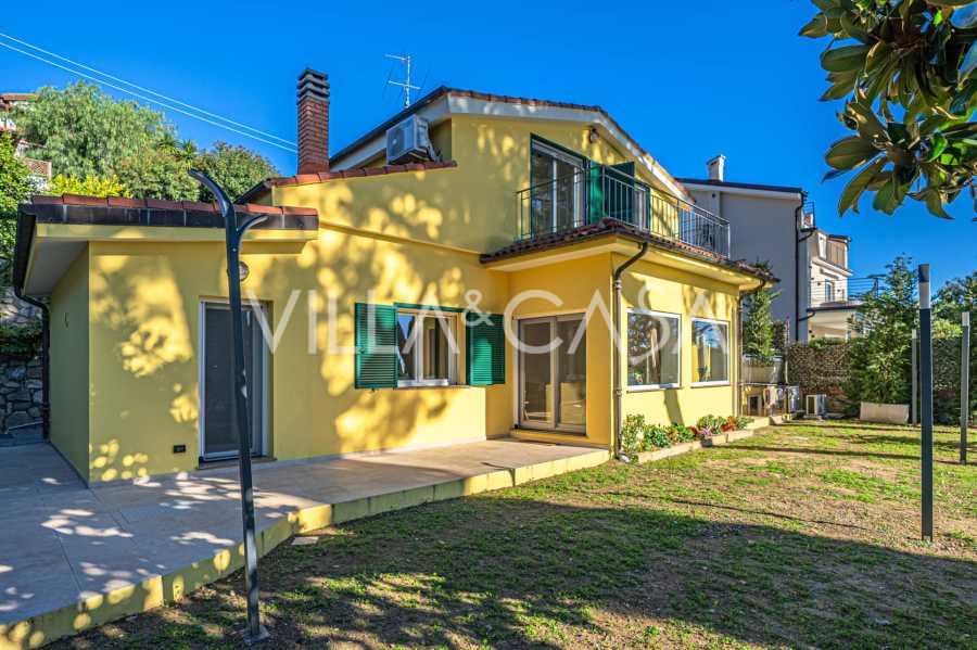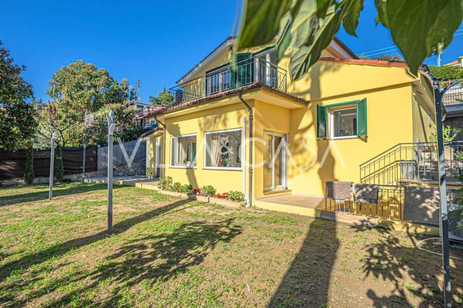 La villa si trova in una tranquilla zona residenziale, si sviluppa su tre piani ed è circondata da un curato giardino privato, da cui si possono ammirare viste mozzafiato sul mare blu e sulle verdi colline costiere.