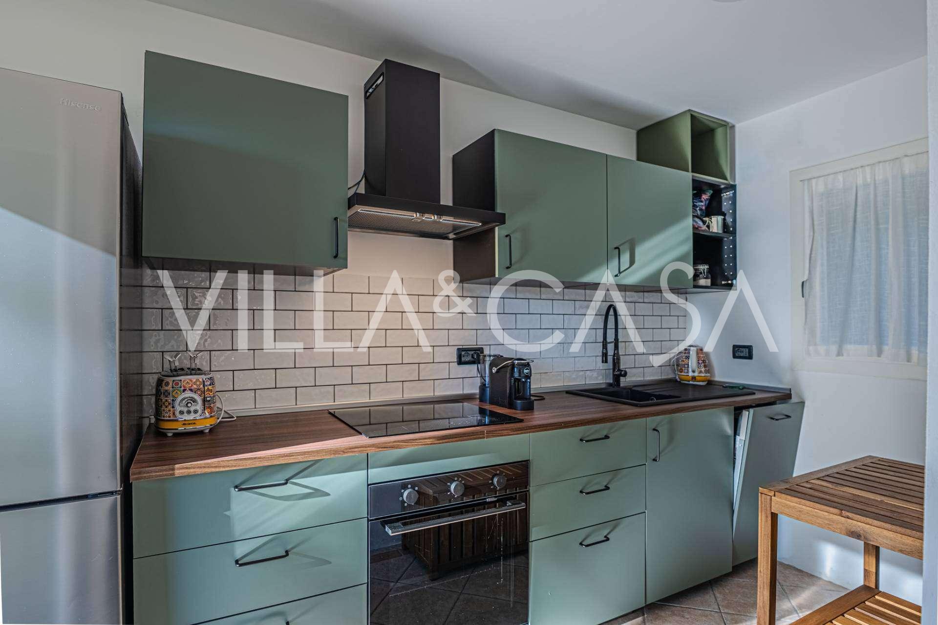 Al piano inferiore si trovano ampi locali di servizio: una dispensa, un comodo bagno e uno spazio aggiuntivo sotto le scale, ideale per conservare vini o altri oggetti.