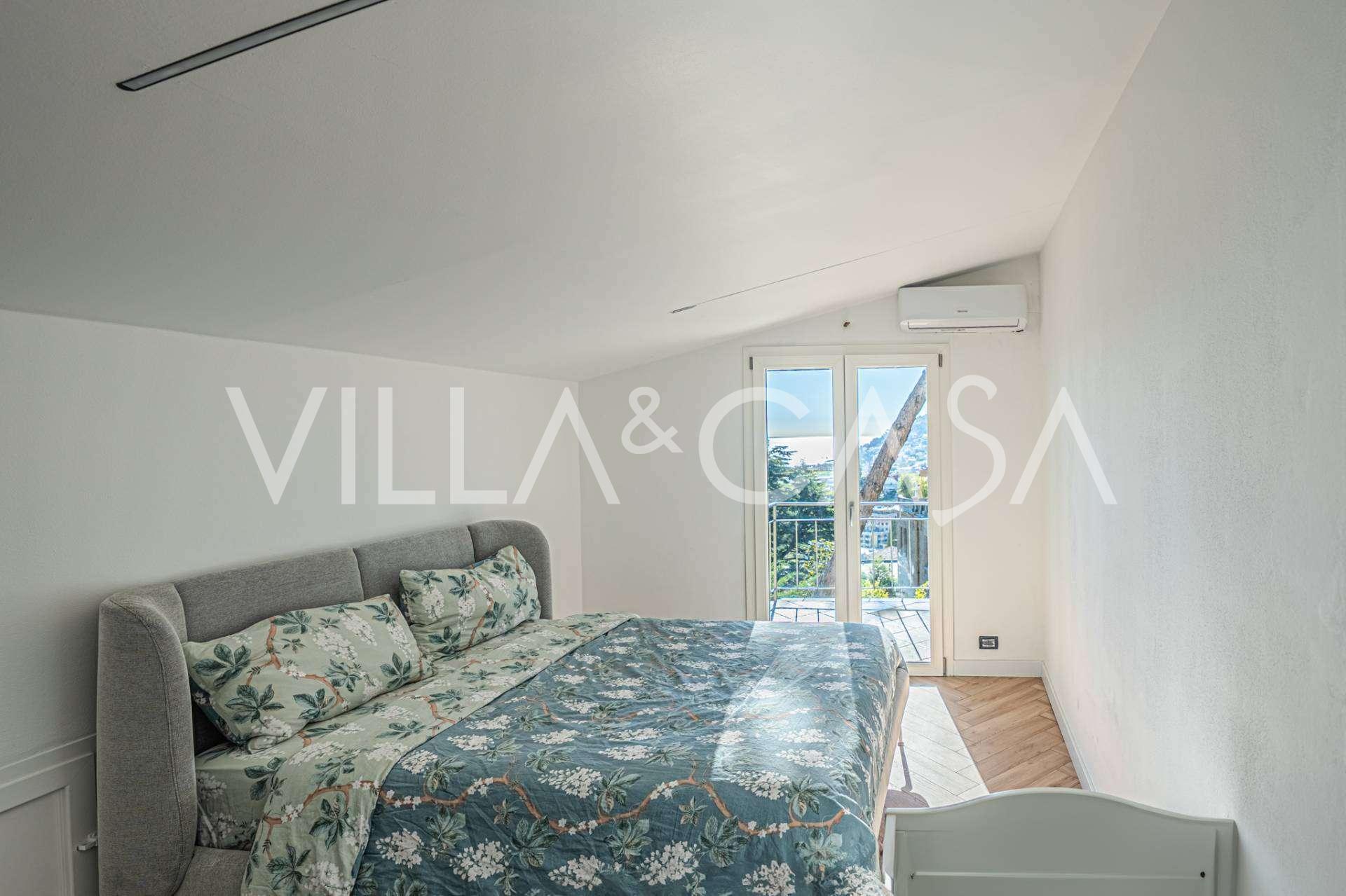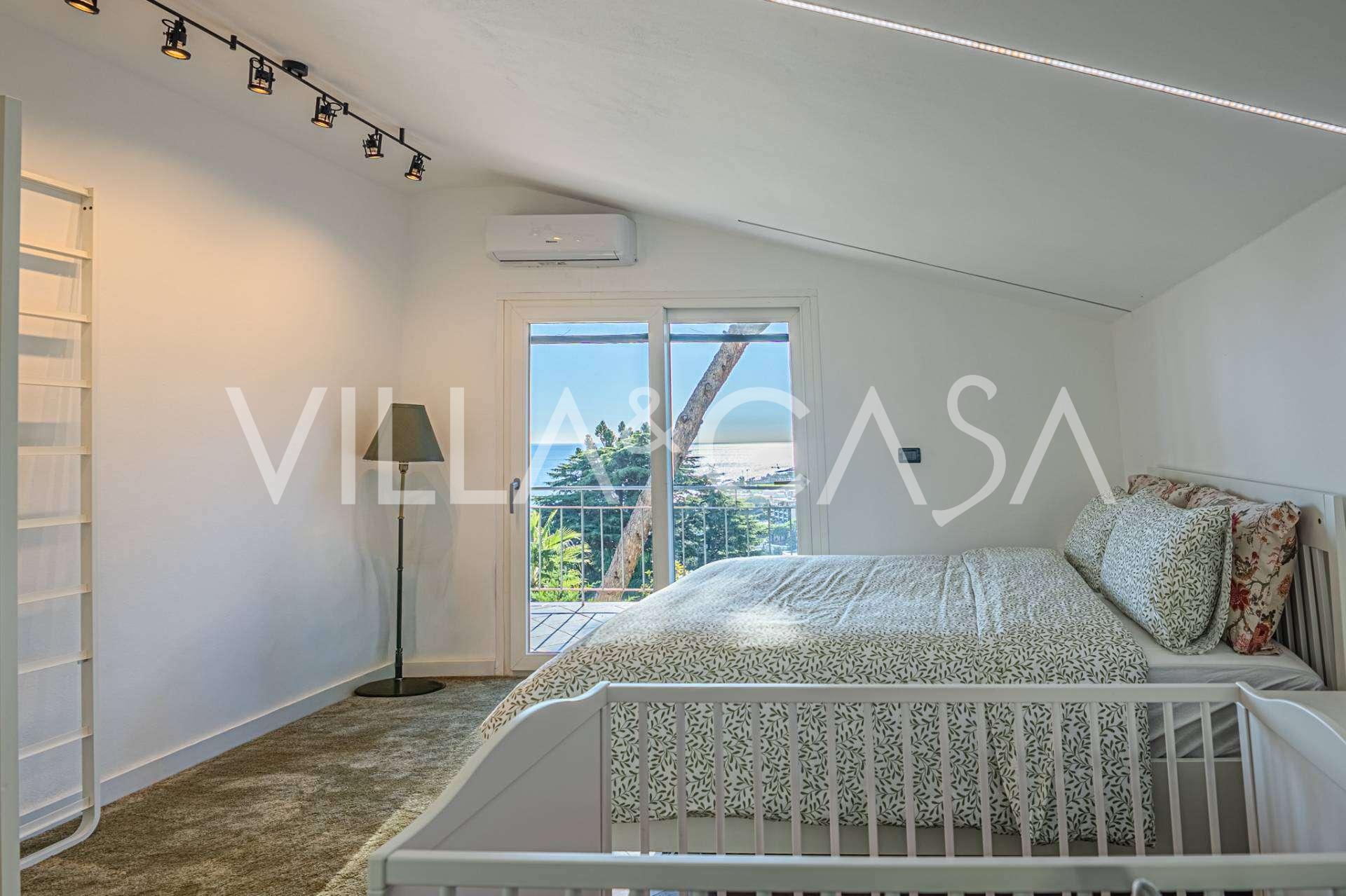 Il piano superiore è destinato alla zona privata con due ampie camere da letto, ognuna con accesso a una terrazza con vista panoramica mozzafiato. Le albe e i tramonti sul mare ligure creano un'atmosfera di completa armonia e romanticismo.