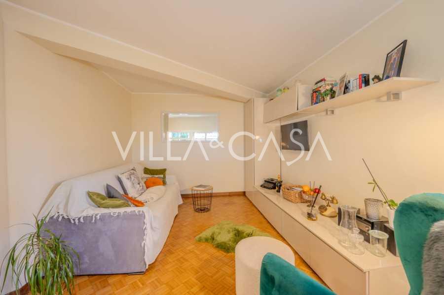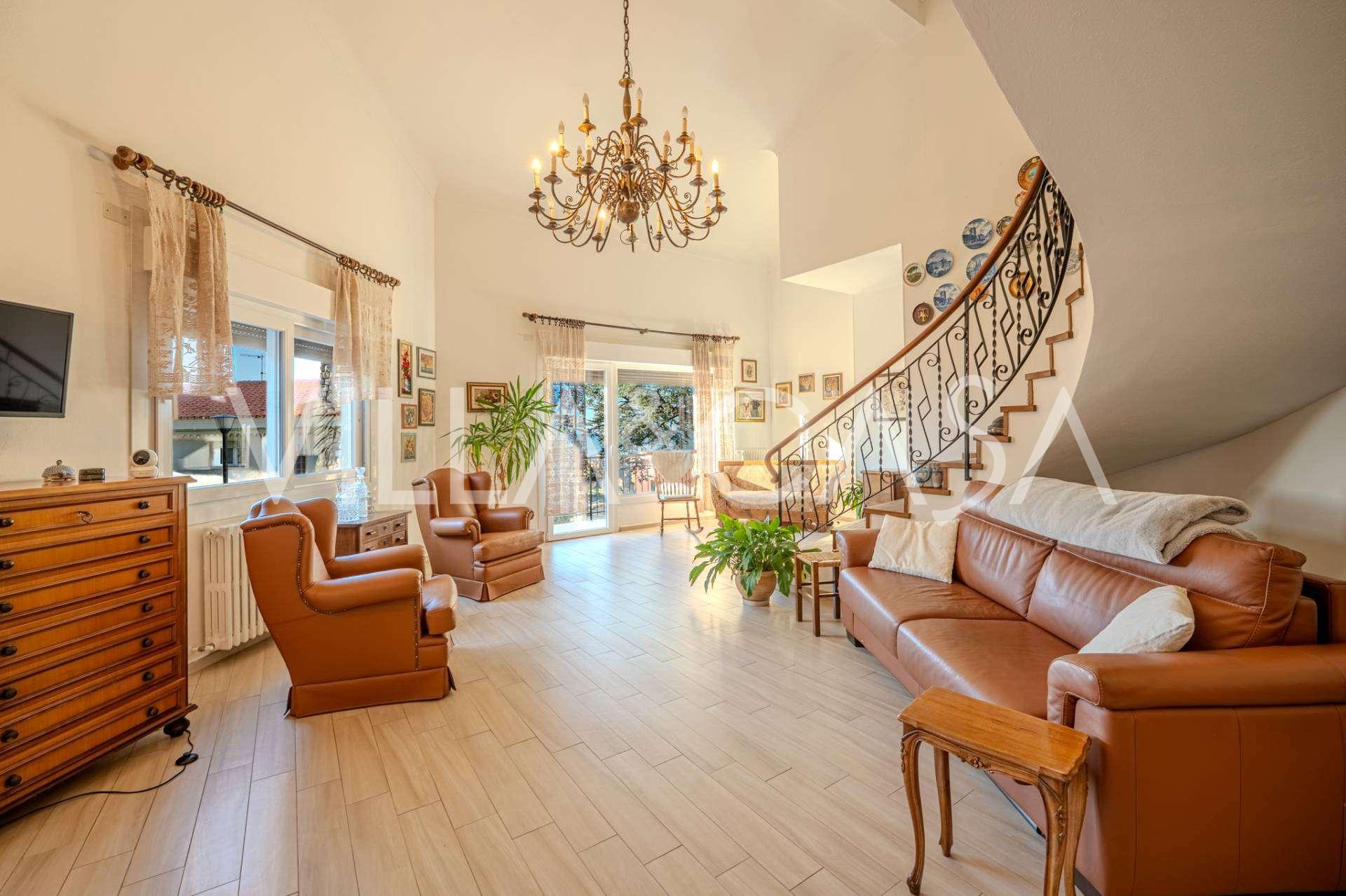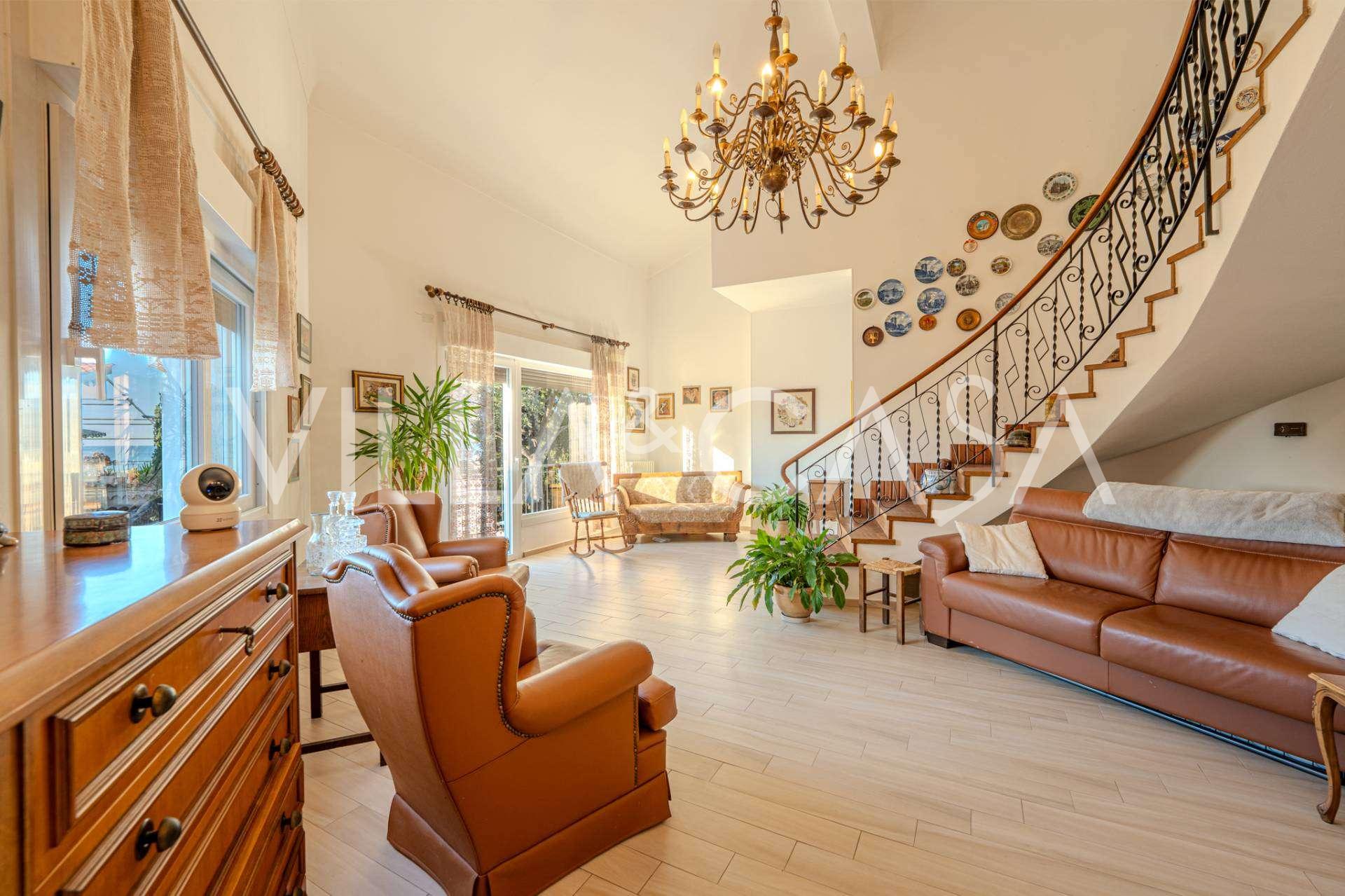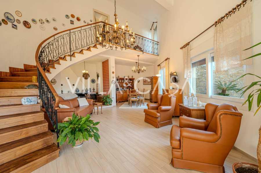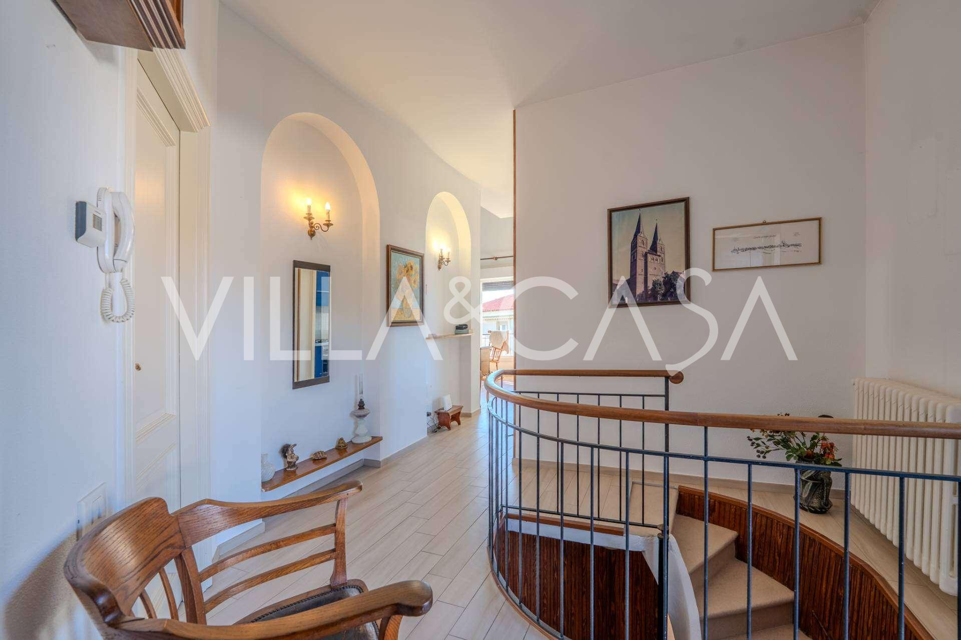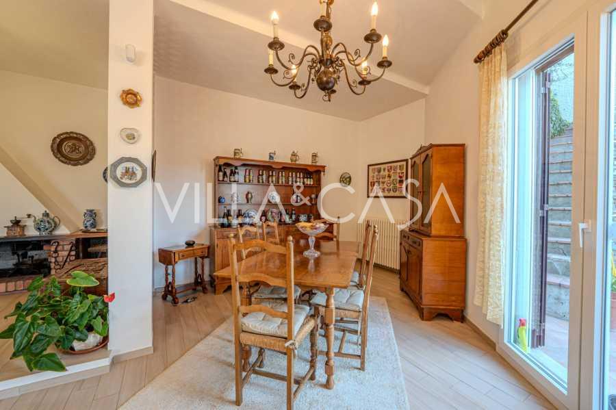 A Vallecrosia, in una zona soleggiata, a soli 15 minuti a piedi dal mare, è in vendita una spaziosa villa di circa 251 m2. La casa si sviluppa su tre piani ed è composta da due parti indipendenti, attualmente unite in un unico spazio abitativo.