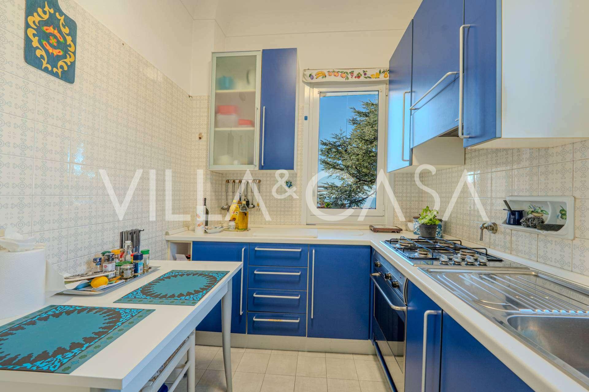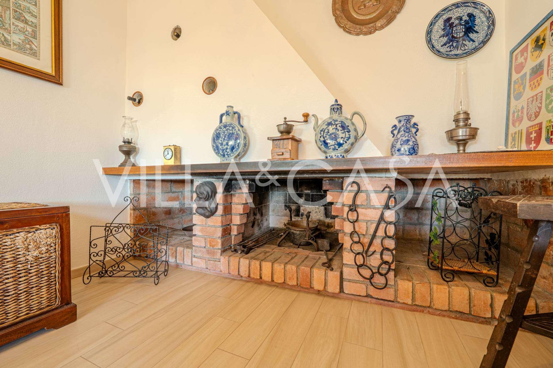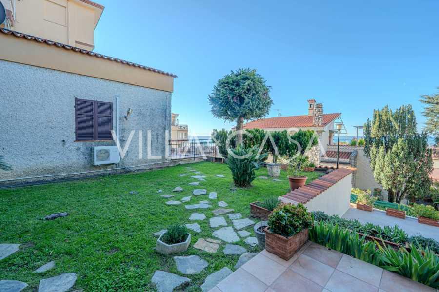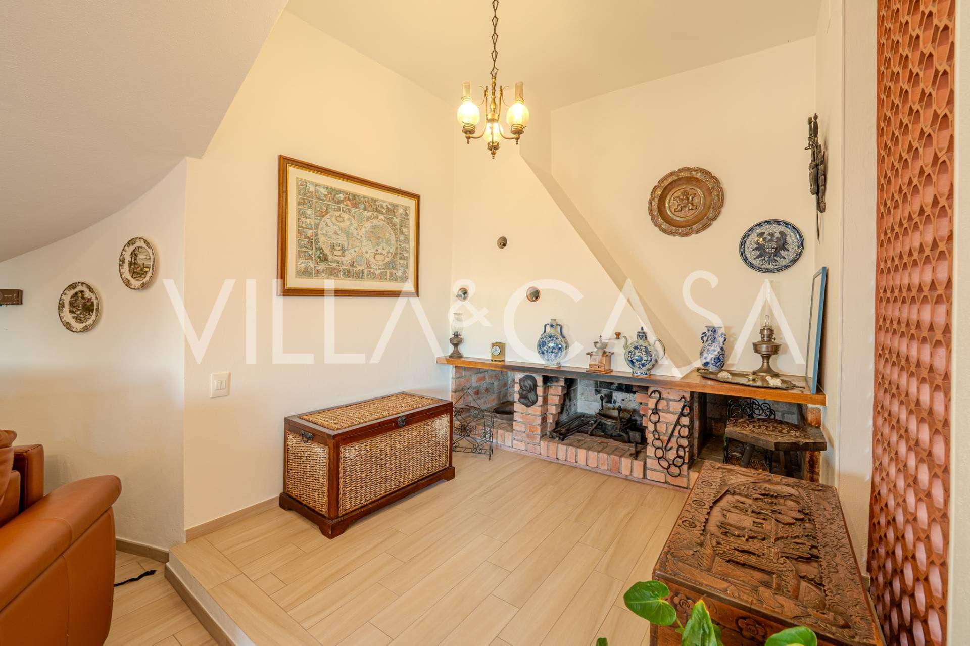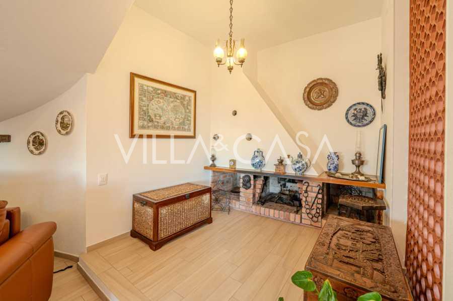 Al secondo livello: ampio soggiorno con camino e vista mare, con accesso al giardino e al balcone. Cucina anch'essa con vista mare. Bagno.