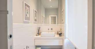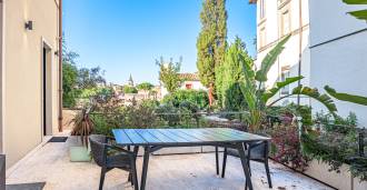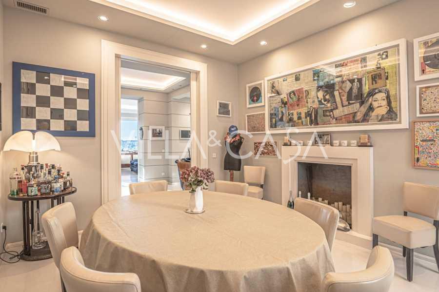 Al piano terra si trova una porta con gestione digitale che conduce a un elegante soggiorno open space, ideale per accogliere gli ospiti in un ambiente accogliente. La cucina moderna, completamente attrezzata, è collegata alla sala da pranzo formale, da cui si apre la vista su un attraente giardino privato: un'oasi di tranquillità e privacy, adatta per il relax o per organizzare eventi esclusivi. Un elegante bagno per gli ospiti completa questo livello.
