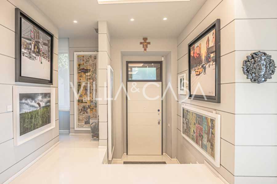 Gli interni sono caratterizzati da stanze spaziose e luminose, rifinite con materiali di alta qualità e dotate di un moderno sistema di domotica integrata. Questo permette di gestire in modo intelligente l'illuminazione, il riscaldamento e il raffreddamento a pavimento, la climatizzazione e la sicurezza attraverso un avanzato sistema di allarme.