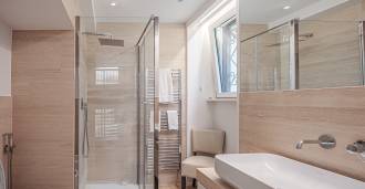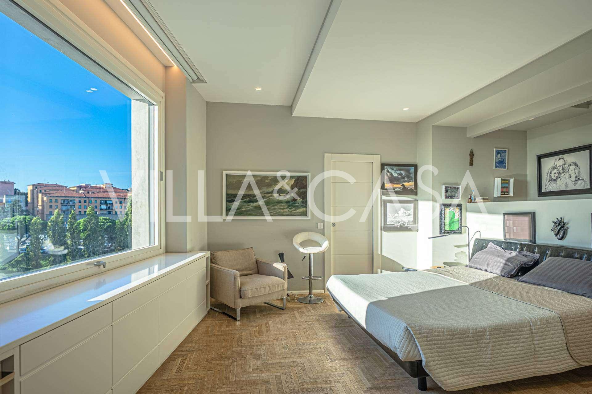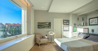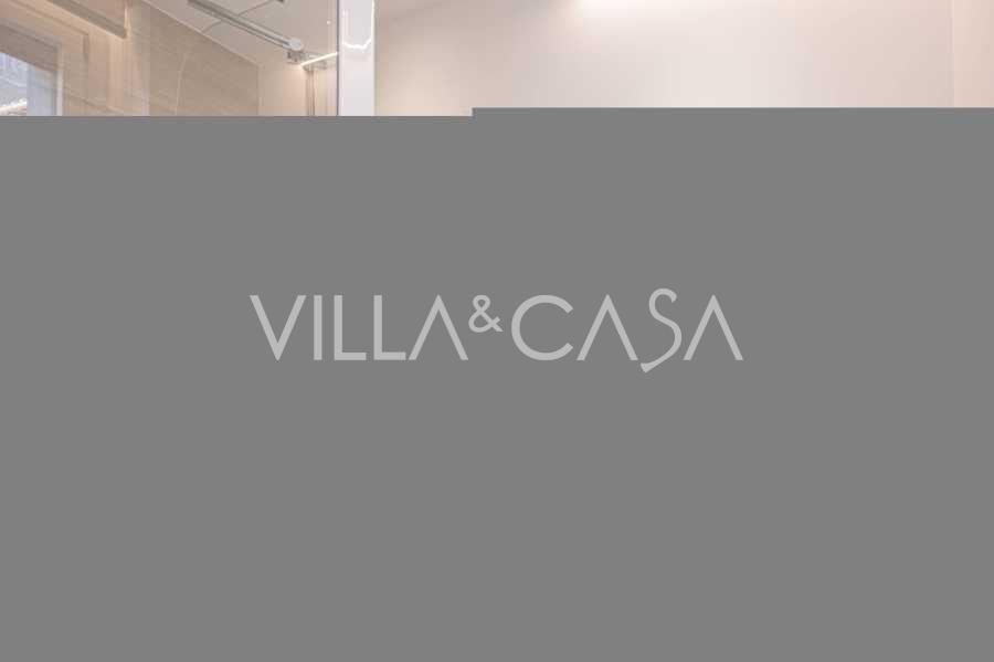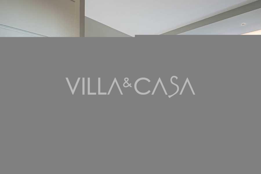 Al piano superiore si trova la zona notte con quattro ampie camere matrimoniali, ciascuna con il proprio bagno realizzato con materiali di design. La camera padronale dispone anche di una cabina armadio separata, progettata per il massimo comfort e funzionalità.